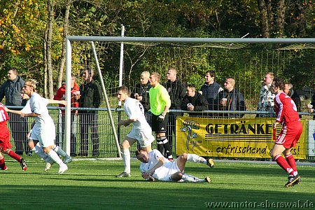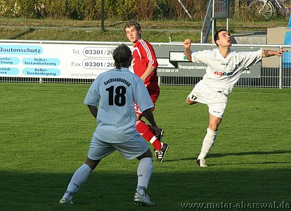 Schon nach 5 Minuten dezimierte sich TuS Sachsenhausen, als ihr Torwart den frei durchlaufenden Johannes Persecke von den Beinen holte und dafür die Rote Karte sah. Die Überzahl nutzte Motor kaum etwas, denn Torchancen hatte trotzdem in der ersten Halbzeit nur die Heimmannschaft, auch wenn diese bei ungenau angesetzten Distanzschüssen wenig Torgefahr brachten. Lediglich bei zwei Kopfbällen nach Ecken musste Swen Lichtenberg eingreifen. Motor lief sich bei den eigenen Angriffsbemühungen immer wieder fest oder man spielte Fehlpässe, das Tempo im Spiel war sehr mäßig was deutlich zeigte das die letzte Entschlossenheit fehlte. In der zweiten Halbzeit hatte Motor gegen die tiefer stehenden Hausherren zwar etwas mehr vom Spiel, ganze 3 Torschüssen im ganzen Spiel von denen keiner wirklich gefährlich war zeigen aber das man weit von einem Auswärtssieg entfernt war, dagegen hatte Sachsenhausen bei zwei Kontern die Führung auf dem Fuß, sie verzogen aber jeweils. Letztlich musste Motor sogar bis um die Schlussphase um den einen Punkt gegen die 10 Sachsenhausener zittern, der aber immerhin mitgenommen werden konnte. Verdient war er angesichts der gezeigten Leistungen allerdings nicht.
