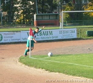 ...präsentierte sich Motor gegen den Frankfurter FC Viktoria. Bereits zu Beginn reichten einige Flankenläufe der Gäste um die Abwehr in Schwierigkeiten zu bringen, vor allem bei hohen Flanken hatte Motor selten ein Mittel gegen die Stürmer. So erzielte Bleck bereits mit dem zweiten Angriff die Führung für Frankfurt. Motor bemühte sich danach und konnte sich zeitweise vor dem Tor der Gäste in Szene setzen. Ein Treffer von Rafet Ates konnte nicht anerkannt werden, da gleich zwei Motor Spieler den Torwart behinderten. Dennoch gelang der Ausglich, als Michel Jahn auf der rechten Seite frei gespielt werden konnte und ins lange Eck traf.