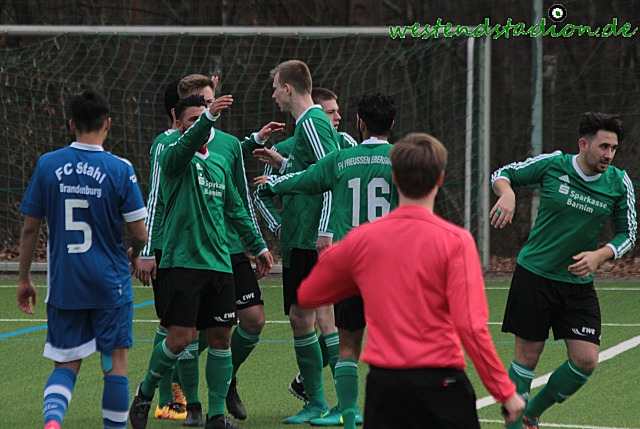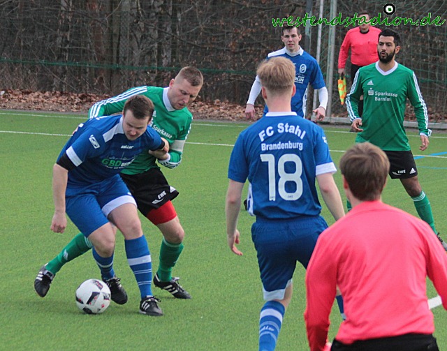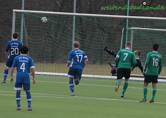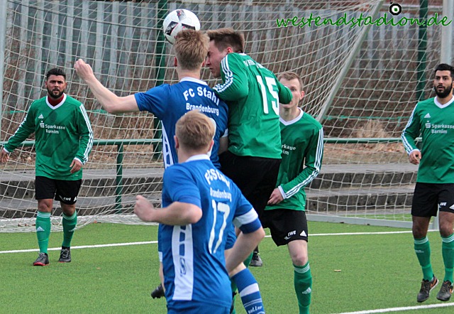 Von Beginn an wenig Mittelfeld, kurze Dribblings offensive Haltung. Von beiden Teams, zunächst mit den Torchancen für die Gäste, die mit einem Vorlleyschuss von der Strafraumgrenze und einem Kopfball die ersten Gelegenheiten nicht nutzen können Preussen geht durch einen Konter in Führung als Hassan Oumari über die linke Seite Arafa El-Moghrabi schickt und dieser direkt mit einem Schuss in die kurze Torecke trifft. Preussen danach spielbestimmend, auch wenn erneut Arafa El-Moghrabi nach guter Vorlage von Nick Lange den Ball zurerst gegen die Querlatte nagelt und den Nachschuss drüber setzt. Preussen drückt jedoch in der Folge aufs zweite Tor und kann den Treffer durch Soheil Gouhari, der sich den Ball nach Dribbling im Strafraum selbst auflegt mit einem Flachschuss erzielen. Der Vorsprung währt aber nicht lange, denn nach einem Zug über die linke Seite verwertet Meyer per Volleyschuss zum Anschlusstreffer. Mit diesem Stand geht es dann auch in die Pause. In den zweiten Abschnitt kommen wieder die Gäste mit mehr Druck, laufen sich aber ohne große Wirkung mehrfach vorm Tor der Preussen fest. Ein Schuss aus spitzem Winkel ans Außennetz war noch die beste Gelegenheit. Dann sind die Eberswalder schnell wieder da und können nach einer feinen Vorlage von Hassan Oumari der auf den frei stehenden Soheil Gouhari rauslegt das 3-1 machen. Doch wieder kommt die Antwort prompt. Diesmal durch einen Konter dem Lennart Peter entgegen geht. Der Stürmer hakt dich ein und bekommt so den Strafstoss der sicher verwandelt wird. Doch heute ging es sofort wieder in die andere Richtung. Nick Lange kann steck passgenau an der Strafraumgrenze auf Soheil Gouhari durch der mit seinem Drehschuss ins lange Eck trifft. Nur drei Minuten später macht eine lässige Abwehraktion wieder die Gäste stark, diesmal sieht auch Lennart Peter nicht gut aus, der am Flachschuss dran ist aber passieren lassen muss. Brandenburg versucht in der Folgezeit gegen tiefer stehende Eberswalder zu drücken, diese befreien sich immer wieder mit Kontern. Zwei Freistosse zehn Meter vor dem Strafraum setzen die Gäste deutlich daneben, so bleibt es bis in die Nachspielzeit spannend. Soheil Gouhari kann mit einem einsprungenen Kopfball die Entscheidung machen, wird aber fest gehalten worauf es Strafstoß für Preussen gibt. Arafa El-Moghrabi behält die Nerven und zieht damit dem Gegner endgültig den Zahn. In der kurzen Osterpause kann Preussen nun entspannd den Nachholspielen zuschauen, man hat sich nicht nur in der Rückrunde einen ansehnlichen Abstand zum Tabellenende geschaffen,sonden auch die Zuschauer nach der häufigen Magerkost der Vorrunde mit torreichen und spektakulären Spielen verwöhnt.