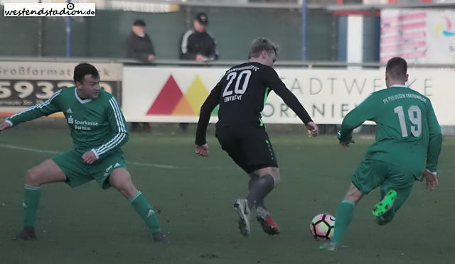 Diese lauerten immer wieder auf Unsicherheiten im Spielaufbau und konterten dann schnell. Besonders leicht wurde es Chinoso Okoro vor dem Führungstreffer gemacht. Der zentrale Verteidiger nahm einen Querpass zu lässig an und verlor den Ball gegen den anlaufenden Stürmer der dann den Torwart überwand und die zur Führung traf. Preussen konnte sich nicht lange an der Führung freuen denn in der nächsten Druckphase, eingeleitet durch einen Eckball stimmte es diesmal in der Eberswalder Innenverteidigung nicht und so führte letztlich ein Kopfball zum schnellen Ausgleich. Oranienburg hat fünf Minuten später die Chance nachzulegen, aber ein verdeckter Schuss streift nur die Querlatte. Danach fängt sich Preussen schnell wieder und steht defensiv stabil. Oranienburg schiebt sich den Ball zwar bis zum Strafraum ordentlich zu kommt aber nicht zum Abschluss. Die erneute Führung von Preussen dann erneut nach einem Ballverlust der Oranienburger und einem Antritt vom Chinonso Okoro, der diesmal Arafa El-Moghrabi bedient und dieser bringt mit Hilfe eines noch zum Rettungsversuch ausholenden Verteidigers den Ball im Tor unter. Gleich nach Pause hat Preussen die Gelegenheit zu erhöhen aber der Schuss von Chinonso Okoro wird pariert und der Nachschuss von Tobias Koepnick geht knapp vorbei. Das Spiel verlagert sich nun ins jeweilige Mittelfeld, in der Preussen den Gegner immer wieder stören kann so das er selten ans Tor heran kommt und sein Heil aus der Distanz sucht, von dort aber schlecht zielt. Richtig Druck können die Oranienburger erst nach der 75.Minute aufbauen als Tobias Koepnick nach wiederholtem Foulspiel die Gelb-Rote Karte gezeigt bekam. Preussen läuft jedoch auch in Unterzahl konsequent alle Lücken, so das die Oranienburger selten überhaupt zum Abschluss kommen. Die Entscheidung dann in der letzten Minute als der gerade erst eingewechselte Shitaro Muraguchi einen Befreiungsschlag an der linken Eckfahne erläuft und seinen Gegenspieler an der Grundlinie abhängt. So kann er auf den völlig frei stehenden Steven Zimmermann ablegen der zum dritten Tor für Eberswalde trifft. Die drei Punkte waren sich nicht zu erwarten, schaffen so aber einen beruhigenden Abstand zu den Mannschaften am Tabellenende. In Lübben sind damit doch noch die angepeilten 20 Punkte zum Ende der Hinrunde machbar.
