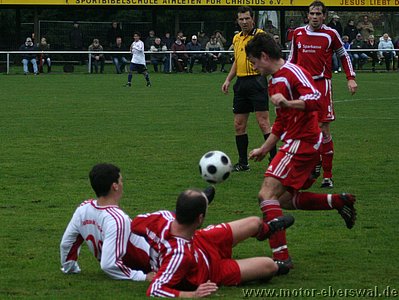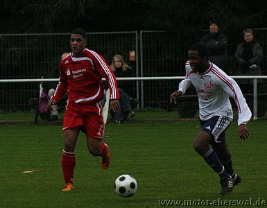 Motor gewinnt in einem hart umkämpften Spiel bei den heimstarken Kuckuck Kickers mit 2:3 und bleibt weiter in der Spitzengruppe. Die Kuckuck Kickers übernahmen schnell die Initiative im Spiel, nutzten diese aber vor allem um ihre Spielkünste mit Hacke und Spitze vor dem Strafraum vorzuführen. Zum Abschluss kamen sie nur mit Distanzschüssen die weit vorbei gingen. Erst nach einer Viertelstunde kam Motor gefährlich in die Hälfte der Prignitzer. Johannes Persecke war auf dem Weg zum Tor allerdings war niemand mitgelaufen, so das er es nur schaffte vor dem Abschluss einen Freistoss gegen seinen ungestümen Gegenspieler herauszuholen. Den als weite Flanke geschlagenen Ball unterschätzte der Prignitzer Keeper völlig so das Martin Präger ihn per Kopf zur Führung überlupfen konnte. Kuckuck verlor danach für einige Minuten die Ordnung, so das sich Motor weitere Möglichkeiten eröffneten, wovon Johannes Persecke völlig frei aufs Tor zulaufen konnte. Der Motor Stürmer lies noch den Torwart aussteigen schoss aber am Tor vorbei. Danach kamen die Kuckuck Kickers wieder ins Spiel, scheiterten aber immer wieder nach sehenswerten Einzelaktionen am zu komplizierten Spiel, das ihnen auf dem ständig mehr durchgepflügten Rasen schwerer fiel. Ihre erste echte Druckphase hatten sie unmittelbar vor der Pause, als zunächst Swen Lichtenberg eine zum Torschuss abgelenkte Flanke knapp über das Tor lenken konnte. Kuckuck berannte mit einer Eckenstafette das Eberswalder Tor und der Ball musste mit vereinten Kräften mehrmals geklärt werden. Im zweiten Abschnitt drückte die Kuckucks weiter, die erste Großchance hatte aber wieder Motor. Torsten Maerz hämmerte einen Ball an die Querlatte. Danach lies sich Motor wieder hinten rein drücken. Kuckuck gelang nach einem abgewehrten Kopfball durch einen Heber von der Strafraumgrenze der unhaltbare Treffer. Kuckuck spielte nun deutlich geradliniger, wurde aber durch die konsequente Zweikampfführung der Eberswalder immer wieder am Abschluss gehindert. Dennoch hatte Motor Glück als der Ball zweimal von der Querlatte ins Feld zurücksprang. Motor befreite sich jedoch gegen die weit aufgerückten Gegner mit viel Geschick, vor allem Rafet Ates hatte zwei weitere Chancen. Bei der ersten scheiterte er mit einem Schuss aus spitzem Winkel am Keeper. Bei zweiten mal dribbelte er sich zentral gegen zwei Gegner frei und ignorierte einen besser postierten Mitspieler. Sein Schuss aus 18 Metern wurde vom Torwart zwar mit beiden Händen erreicht, aber dieser klatscht die Kugel in den Torwinkel ab. Die erneute Führung schockte den Gegner sichtlich, der wieder in Einzelaktionen zurück fiel und mehrmals überhastet abschloss. Motor bekam nun auch das Mittelfeldspiel in den Griff und spielte geduldig weiter nach vorne. Der eingewechselte Ümit Ergin hatte eine weitere Torchance gegen den erneut unsicheren Torwart. Kuckuck schien nach dem aufwendigen Spiel in der ersten Hälfte Tribut zahlen zu müssen, während Motor ihre Aktionen immer wieder mit einfachen Mitteln unterbrach. Ein weiterer Konter brachte den dritten Treffer für Eberswalde. Ümit Ergin spielte auf Christian Schlegel, der über die linke Seite in den Strafraum eindrang und den Ball zwischen dem Keeper und einem zurück gelaufenen Verteidiger ins Tor durchsteckte. Kuckuck mobilisierte nun nochmal alle Kräfte und rannte mit allen Mann an. Das wäre ihnen schnell zum Verhängnis geworden den bei einem Konter über Christian Schlegel und Rafet Ates lag der vierte Treffer in der Luft. Stattdessen bekam Kuckuck in der 87.Minute die Chance zum Ausgleich, denn für ein Halten von Torsten Maerz knapp im Strafraum gegen seinen Gegenspieler gab es Elfmeter. Swen Lichtenberg ahnte jedoch die Ecke und konnte halten. Auch den Nachschuss wehrte der Keeper mit einem Reflex ab. Motor schaffte es bis in die Nachspielzeit geschickt zu verteidigen, erst in der 92.Minute bekam Kuckuck noch einen Freistoss von der Strafraumgrenze, der von der Lattenunterkante absprang und 'like Wembley66' von der Torlinie absprang. Der Linienrichter sah den Ball im Tor. Der Treffer wurde gegeben, aber das Spiel danach nicht mehr angepfiffen. Der zweite Auswärtssieg für Motor Eberswalde war damit perfekt.