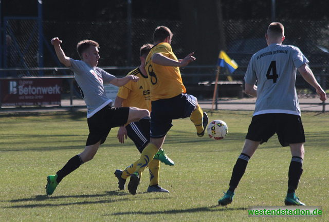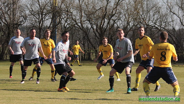 Die Anfangsphase gleich mit Preussen im Vorwärtsgang. Man konnte das Mittelfeld gegen abwartende Gubener gut behaupten und spielte sich die erste Großchance heraus. Hassan Oumari schickt Araf El-Moghrabi über die linke Seite, dieser schiesst an die Querlatte, den zurückprallenden Ball köpft Adam Wiejkuc so das er sich nochmals gegen die Querlatte senkt und erst dann kann die Abwehr klären. Im Gegenzug nutzt Guben dann ein Laufduell über die linke Seite, verzögert aber den Abschluss durch einen Querpass, den Schuss kann Lennart Peter halten. Danach ist wieder Preussen dran. Ein Freistoss von Soheil Gouhari prallt zurück und der lange in Guben spielende Marvin Wegner trifft gegen seine alte Mannschaft mit dem Abstauber. Preussen hat danach noch drei weitere Großchance zunächts schiebt Arafa El-Moghrabi den Ball knapp am linken Pfosten vorbei. Nick Lange kann den Ball vom rechten Fünfmeterraumeck genauso wenig im Tor unterbringen wie Soheil Gouhari der zehn Minuten später mit einer Volleyabnahme aus drei Metern verzieht. Dennoch spielt nur noch Preussen, die Gubener verlieren früh die Zweikämpfe und bringen keinen Angriff mehr zu Ende. Unmittelbar vor dem Pausenpfiff gibt es noch einmal eine Ecke die Soheil Gouhari von rechts reinbringt und die der Gubener Torwart unterläuft, so das er nur noch zuschauen kann wie Adam Wiejkuc hinter ihm einköpft. Mit dem Vorsprung kommt Preussen aus der Kabine und erwartet die Aufholjagt der Gubener, die aber nicht kommt. Chancen hat die Heimmannschaft nur aus Standards. So lenkt Lennart Peter einen Heber nach Flanke von rechts kanpp übers Tor, kann aber andere Konterversuche rechtzeitig ablaufen. Preussen kann nimmt zwar auch angesichts der Temperaturen langsam einen Gang raus, nutzt aber immer noch die Lücken die sich in der Abwehr des Gegners auftun. Hassan Oumari schickt Adam Wiejkuc auf der rechten Seite, der kann sich nach Zweikampf durchsetzen läuft parallel zur Grundlinie ein von wo er unbedrängt Nick Lange am langen Pfosten findet, der den dritten Treffer macht. Drei Minuten vor Schluss noch eine Doppelchance als zunächts Soheil Gouhari aus fünf Metern am Keeper scheitert und Adam Wiejkuc den abgeprallten Ball mit einem Gewaltschuss übers Tor jagt. Zum Schluss schob man sich den Ball noch entspannt zu was man sich angesichts der souveränen Vorstellung aus verdient hatte.