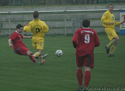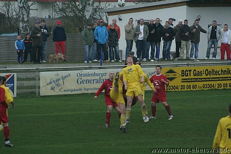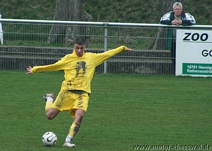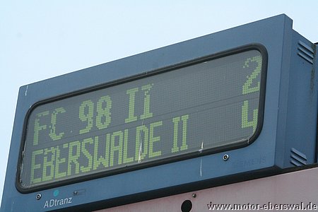 Ohne größeres Abtasten nahm die Partie sofort Tempo auf, so dass sich eine ansehnliche Anfangsphase entwickelte. Bereits in der ersten Spielminute hatte Motor – Akteur Sebastian Schmidt den Führungstreffer auf dem Fuß, er traf nach einem schönen Doppelpass mit Prost jedoch nur die Latte (1.). Im Gegenzug ging der Gastgeber in Führung, als ein Freistoß aus 35-Metern im FV – Gehäuse landete (2.). Anschließend übernahmen die Barnimer das Spielgeschehen, ließen den Ball ansehnlich durch die eigenen Reihen laufen und dominierten die Partie nach belieben. Die Waldstädter erspielten sich hervorragende Einschussmöglichkeiten, Hellmich mit einem Schuss knapp neben dem Tor und Prost, dessen Kopfball die Latte touchierte, vergaben jedoch (8. / 11.). Besser machte es Robin Schwarz in der 23. Spielminute, als er nach einem herrlichen Grundlinienrückpass von Frank Ploen zum längst überfälligen Ausgleich traf. Motor machte in der Folgezeit weiter Druck, fand gegen die tief stehende Deckung des FC 98 jedoch nur selten ein Mittel. Die Spielweise des Gastgebers basierte auf lang geschlagene Bälle zu den Spitzen. Dieses Mittel scheiterte jedoch, da die Bälle zu ungenau gespielt wurden und somit keine Gefahr für die insgesamt umsichtig agierende Motor – Abwehr darstellten. In der 33. Spielminute ging Motor II dann in Führung, als Prost nach einem abgewehrten Torschuss von Schwarz im Nachschuss zum 2:1 traf. Zu beginn des zweiten Spielabschnitts waren die Eberswalder erneut in allen Belangen überlegen. Der Motor – Elf war deutlich anzumerken, dass sie eine frühe Entscheidung suchte. Nachdem Schwarz (2) und Krause noch scheiterten (51. / 52. / 53.), machte es Krause nur wenige Augenblicke später besser, als er nach einem herrlichen Pass von Hellmich den Ball zum 3:1 ins Tor beförderte (54.). In dieser Phase der Partie überzeugte Motor mit ansehnlichem Kombinationsspiel und agierte hoch überlegen. In der 59. Spielminute spiegelte sich die deutliche Dominanz der Eberswalder auch im Ergebnis wieder. Der an diesem Tage stark agierende Robin Schwarz krönte seine überragende Vorstellung mit seinem zweiten Treffer und traf nach einem Klasse – Spielzug über Ploen und Hellmich zum hoch verdienten 4:1. In der Folgezeit nahm Motor II das Tempo etwas raus, so dass sich Hennigsdorf von Minute zu Minute mehr Spielanteile erarbeitete. Daraus resultierten zwei sehr gute Chance, doch einmal parierte Peters aus Nahdistanz und beim zweiten Schussversuch strich der Ball knapp am Tor vorbei (61. / 77.). Motor blieb zwar bis zum Partie ende Spiel bestimmend, agierte jedoch nicht mehr ganz so hochkonzentriert wie nach dem Seitenwechsel, so dass sich nun einige Fehlpässe im Eberswalder – Aufbauspiel einschlichen und die Spielkultur dadurch etwas verloren ging. Unmittelbar vor Abpfiff verkürzte Hennigsdorf mit einem abgefälschten Torschuss auf 4:2 (89.), was jedoch nichts am souverän heraus gespielten Auswärtssieg der Motoraner änderte.