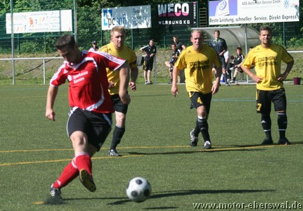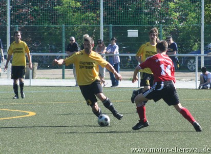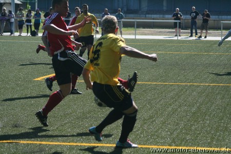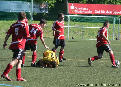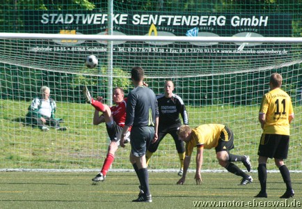Motor entscheidet das Spiel in Senftenberg bereits in der ersten Halbzeit und entledigt sich auch der letzten Abstiegsängste. Der neue Kunstrasenplatz schien dabei der Spielanlage der Eberswalder von Beginn an besser zu liegen als der Heimmannschaft. Schon in der zweiten Minute musste ein Briesker Verteidiger gegen einen Kopfball von Marcel Urbanowicz auf der Linie retten. Obwohl die Senftenberger zuächst mehr Ballbesitz hatten und sich mühten ans Tor von Swen Lichtenberg heran zu kommen, brachten die Motor Angriffe wesentlich mehr Torgefahr. Vor allem weil der Ball zwischen Christian Schlegel, Ümit Ergin und Christian Rauch gut hin und her lief. Mit einer weiteren Großchance scheiterte zunächst Marcel Urbanowicz aus Nahdistanz am Torwart, aber Ümit Ergin war zur Stelle und staubte zur Führung ab. Brieske fünf Minuten später mit der besten Torgelegenheit in der ersten Halbzeit, aber Swen Lichtenberg kann den Distanzschuss halten. Fast in Gegenzug dann dann eine saubere Kombination des auf der linken Seite starken Ümit Ergin mit Christian Rauch diese findet zentral völlig frei vorm Tor Christian Schlegel der den Zweiten Treffer erzielt. Brieske nun beeindruckt, gab den Eberswaldern immer mehr Raum und so konnte aus einer ähnlichen Situation wieder über Ümit Ergin in der Mitte Konrad Schulz angespielt werden, der seinen ersten Brandenburgligatreffer erzielte. In dieser Phase das Spiel praktisch entschieden und lediglich die warmen Temperaturen bremsten etwas das Tempo im Spiel. In der Defensive konnten Sebastian Schmidt und Christian Stelse die mit viel Laufaufwand vorgetragenen Angriffe der Senftenberger bereits früh abblocken. So wie die erste Halbzeit geendet hatte , so begann auch die zweite. Senftenberg kann der Flügelzange Christian Schlegel und Ümit Ergin wenig entgegen setzen. Nach einer Flanke von Christian Schlegel ist ein Senftenberger vor Ümit Ergin mit dem Arm am Ball und es gibt Elfmeter, den Christian Schlegel sicher verwandelt. Auch danach wirbelt man die Senftenberger Abwehr weiter durcheinander, ein genau platzierter Fernschuss von Rico Musick bringt das 5:0. Es schien sich ein Schützenfest anzubahnen. Nach einer Stunden brachten dann allerdings einige Auswechslungen einen kleinen Bruch ins Eberswalder Spiel, auch schien durch den hohen Vorsprung die Konzentration nachzulassen. Obwohl man auch weiterhin Torchancen von Michael Prost und dem eingewechselten Thomas Döhring und dem unermüdlich rackernden Ümit Ergin hatte, waren die Aktionen nicht mehr so zwingend und im Abschluss nun glücklos. Senftenberg, die nichts mehr zu verlieren hatten begannen sich nochmal ins Spiel zurückzuarbeiten. Der erste Gegentreffer dann nach einer Flanke in den Rücken der Abwehr von rechts, gegen den Direktschuss war Swen Lichtenberg chancenlos. Motor verwaltete nun mehr den immernoch stattlichen Vorsprung und schien auch nicht in Gefahr zu bringen zu sein. Dennoch erlaubte man sich zehn Minuten vor Schluss praktisch eine Kopie des ersten Gegentores , auch diesmal ging alles über die rechte Abwehrseite und in der Mitte stimmte die Zuordnung nicht. Zwar konnte auch dieser Treffer am Spielausgang nichts mehr ändern, ein bißchen schien die Leichtigkeit nun aber zu schwinden. Fünf Minuten vor Schluss wurde auch Ersatztorwart Marcus Gebhardt für seine Teilnahme an der weitesten Auswärtsfahrt der Saison noch belohnt und durfte Swen Lichtenberg zwischen den Pfosten ablösen. Aber nun machte Senftenberg nochmal richtig Druck. Nach einem Schuss aus spitzem Winkel der nicht konsequent abgewehrt wurde, gelang der Heimmannschaft in der Nachspielzeit noch einmal den Ball über die Torlinie zu drücken. Allerdings war unmittelbar danach dann Schluss. Auch unter Betrachtung aller Eventualitäten ist damit der Klassenerhalt geschafft und es eröffnet sich für die letzten drei Saisonspiele nochmal die Aussicht vielleicht noch in dem dicht zusammengerückten Tabellenmittelfeld ein paar Plätze gut zu machen.