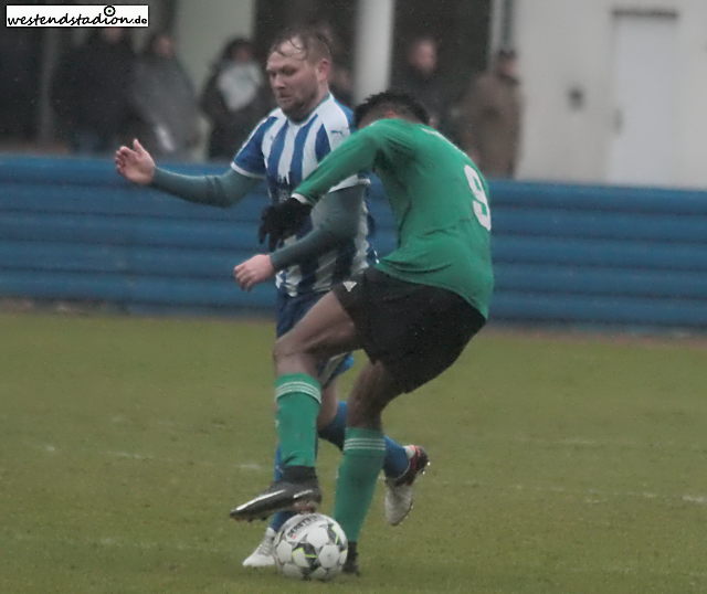Das Spiel mit wenig Akzenten. Ein Kopfballchance von Tomasz Bejuk nach einer halben Stunde, dann muss Jacek Malanoski einen Ball über die Querlatte lenken. Das wars aber auch. Im zweiten Abschnitt bei strömendem Regen dann fast nur noch Zufallsaktionen. Kurz vor Schluss läuft Solomon Chinonso Okoro dann von rechts in den Strafraum ein und hakt sich beim nebenher laufenden Gegenspieler ein und fällt. Der Strafstoss bringt die Führung. In der Nachspielzeit wird ein zweites Tor dann verschenkt. Denn statt direkt abzuschliessen, legt Tomasz Bejuk den Ball nach vorne vorm schon geschlagenen Keeper ab, Abseits. Nach dem Schlusspfiff kartete der Trainer der Petershagener bei Chinonso Okoro nochmal nach und löste ein Rudel aus. Wegen der Schubserei bekam Tobias Koepnick und ein Petershagener Rot. Die Auswahl kam wohl nach Zufallsprinzip, denn da waren auch andere Spieler gut dabei.