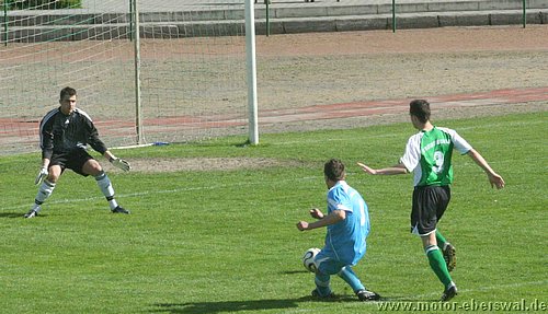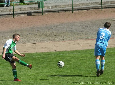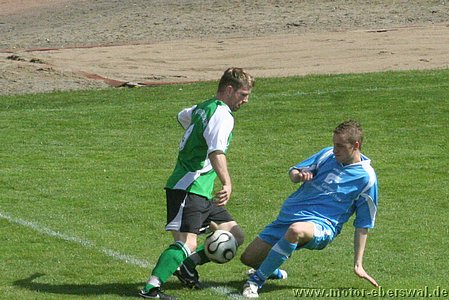Die Hausherren begannen stark, setzten sich sofort in der Gartz – Hälfte fest und bestimmten die Partie. So gelang dem FV ein früher Führungstreffer, als Schilling nach Freistoßvorlage von Ploen per Kopf erfolgreich war (6.). Anschließend blieben die Barnimer zwar die aktivere Mannschaft, die Angriffsversuche blieben jedoch stets am kompakt agierenden Gartzer Deckungsverbund hängen. Die Gäste aus Gartz, die jeden Punkt im Kampf um den Klassenerhalt benötigen, agierten aus einer sicher stehenden Defensive heraus verhalten im Offensivspiel und lauerten auf Konter. Das erste Achtungszeichen der Uckermärker entstand aus einer Kontergelegenheit, als ein Gartz – Akteur das Motor – Gehäuse mit einem Distanzschuss nur knapp verfehlte (17.). In dieser Phase wirkte die Partie zerfahren. Motor II war zwar bemüht Druck auszuüben, ließ jedoch die Durchschlagskraft und Konsequenz beim Torabschluss vermissen. Chancen entsprangen meist nur aus Zufallsprodukten, als Schüler eine tolle Flanke von Hahn nur knapp verpasste (24.). Fast im Gegenzug erspielte sich Gartz seine bis dato größte Tormöglichkeit, als ein Blau – Weiß Spieler nach einem schnell hervor getragenen Konter nur knapp am Tor vorbei schoss (28.). Nach einem Zweikampf im Eberswalder Strafraum entschied Schiedsrichter Wilke auf Foulstrafstoß für Gartz, den Andre Sengebusch wie bereits im Hinspiel sicher verwandelte – 1:1 (36.). Kurz vor der Pause bot sich noch einmal eine Gelegenheit für FV – Angreifer Schilling, dessen gefühlvoller Heber jedoch vom gut mitspielenden Gartz – Torwart Florian Hoppe entschärft wurde (41.). Motor II agierte zwar überlegen, zog jedoch keinen Nutzen daraus, da die Angriffe zu unkonzentriert beendet wurden. Zu Beginn des zweiten Durchgangs agierte der FV zunächst entschlossener. So scheiterte der eingewechselte Bülow mit einem Distanzschuss, der das Tor nur knapp verfehlte (47.). Im Gegenzug ging Gartz in Führung, als Mariusz Andrusewicz nach einem starken Konter überlegt abschloss und zum 2:1 traf (48.). In der Folgezeit riss Motor das Spielgeschehen mehr und mehr an sich und drängte Gartz in die Defensive. Motor II wirkte jedoch zu verspielt, ließ den entscheidenden Finalpass vermissen und fand gegen die dicht gestaffelte Gäste – Abwehr kaum ein Mittel. Die besten Chancen vergaben Bülow, dessen Kopfball auf der Torlinie von einem Gartz – Akteur geklärt wurde und Schilling, der mit einem Freistoß am SV – Torwart scheiterte (66. / 71.). Als Frank Ploen im Gartz Strafraum gefoult wurde, zeigte der Referee erneut auf den Punkt. Robin Schwarz verlud den Torwart und erzielte den mittlerweile hoch verdienten 2:2-Ausgleich (79.). In den Schlussminuten rannte Motor II zwar pausenlos an, doch Gartz machte geschickt die Räume eng, so dass es beim gerechten Remis blieb, da Motor trotz optischer Überlegenheit zu wenig investierte um als Sieger vom Platz zu gehen.