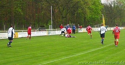Auf ebenem aber sehr nassem Geläuf, bei Dauerregen trat Motor II beim SV Kloster Lehnin an und hatte bereits in der 10.Minute das Nachsehen als Swen Lichtenberg einen scharfen Schuss aus 20 Metern unterschätzte und so den Rückstand hinnehmen mußte. Motor danach unter Druck gegen die hochgewachsenen Gastgeber, allerdings blieb das Spiel zerfahren, weil der Ball auf dem rutschigen Rasen nicht präzise gespielt werden konnte. Das 2:0 erzielte Lehnin dann aus stark abseitsverdächtiger Position, als bei einem Nachschuß ein Stürmer den Ball abstaubte. Marcg Beuster rastete danach aus und warf den Ball weg was ihm die 5.gelbe Karte und Sperre gegen Prenzlau einbrachte. Motor danach besser weil schneller gespielt wurde. Hier hatten die Gastgeber deutliche Nachteile. Eine Flanke von Stev Tegge konnte, der heute mitspielende, Trainer Frank Hylla per Kopf zum Anschlußtreffer verwandeln. In der zweiten Hälfte Motor II mit mehr Zug zum Tor und mit Pech, als Christian Hintz und Marc Beuster knapp scheiterten. Lehnin hatte seine besten Gelegenheiten nach Ecken, wobei Swen Lichtenberg mit zwei starken Paraden einen höheren Rückstand verhinderte. Am Ende war es für Motor II mal wieder eine Niederlage nach vier Siegen in Folge. Wenn in den letzten Spielen gepeunktet wird dürfte der Klassenerhalt schon sicher sein.