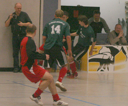 Motor Eberswalde wurde im Feld des local Cups in Schwedt am Ende Fünfter. Der Modus des Turniers wurde durch die Absage des 1.FC Neubrandenburg gekippt und in eine Punkterunde mit 21 Spielen verwandelt. Auch Motor Eberswalde musste kurzfristig auf den, wegen einer Erkältung ausgefallenen Mathias Manteufel verzichten, startete im ersten Turnierspiel gegen Energetyk Gryfino mit einem 2:1 Sieg. Zwei Tore von Frank Ploen und Lars Hellmich brachten Motor in Front, nach dem Anschlusstreffer rette Adrian Peters mit starken Paraden die ersten Punkte. Spätestens nach dem vierten Turnierspiel wurde Fußball aber zur Nebensache, in der gut gefüllten Halle. Nachdem im Spiel Hansa Rostock II gegen Energetyk Gryfino Polnische und Rostocker Fans massiv aneinander gerieten und ein Polizeieinsatz das Turnier für mehr als eine halbe Stunde unterbrach. Danach wurde wieder Fußball gespielt, die Spiele wurde wegen des Zeitverlustes aus 10 Minuten gekürzt. Als Motor Eberswalde wieder dran war, holten sie mit Toren von Marcell Hellmich und 2x Frank Ploen einen 3:0 Sieg gegen Pogon Szczecin. Im vierten Turnierspiel setzte es dann eine 1:5 Niederlage (Tor Lars Hellmich) gegen den FC Schwedt und spätestens nach der 1:4 Niederlage gegen Hansa Rostock II (Tor Frank Ploen) war die Motivation deutlich gesunken, so das man in den beiden restlichen Spielen gegen Viktoria Frankfurt (1:4, Tor Frank Ploen) und die Uckermark Auswahl (1:4, Tor Ferry Manteufel) mit müden Vorstellungen und umständlichem Spiel deutlich unterlag. Am Ende landete man vor den beiden polnischen Mannschaften auf dem fünften Platz. Wobei diese im Turnier, für das agressive Verhalten ihrer Anhänger desöfteren Büssen mussten und von den Schiedsrichtern überdurchschnittlich mit Strafen eingedeckt wurden.