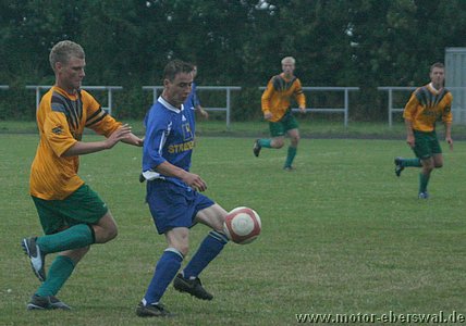 Vor dem Spiel Motor Eberswalde beim SV Prohner Wiek fand ein Altherrenspiel auf dem Sportplatz statt, in dem sich ein Spieler schwer verletzte, die Bergung des Verletzten dauerte sehr lange so das das anschließende Spiel mit 30 Minuten Verpätung begann. Um der Dunkelheit auf dem unbeleuchteten Platz zu entgehen, Vereinbarte man zunächst ein zweimal 30-Minuten Spiel. Da es dann doch recht hell war wurde die zweite Halbzeit doch 45 Minute gespielt. Im ersten Abschnitt kam Motor nicht recht auf Touren. Bei Torchancen wurde zu lange gezögert, so liessen Thoralf Krause und Christian Schlegel Schussgelegenheiten aus. Die Gegner versteckten sich auch nicht und konnten einige Entlastungsangriffe fahren. Erst im zweiten Abschnitt spielte Motor effektiver vor dem Tor und hatte dann auch Erfolg als Rafet Ates eine Kopfballverlängerung im Tor unterbrachte. Motor drückte nun den Gegner hinten rein, lies aber immernoch zu viele Chancen aus. Andy Germer erhöhte auf 2:0 und ein satter Schuss von Christian Rauch schlug zum dritten Treffer unhaltbar ein. Prohn kam nun kaum noch über die Mittellinie und Kristian Stelse nutze die nächste Gelegenheit zum vierten Treffer. Kurz vor Schluss hatte Prohn eine Gelegenheit nach einer Freistossflanke. Da die Motor Abwehr auf einen einlaufenden Stürmer nicht aufpasste. konnte dieser völlig frei zum Ehrentreffer einköpfen.