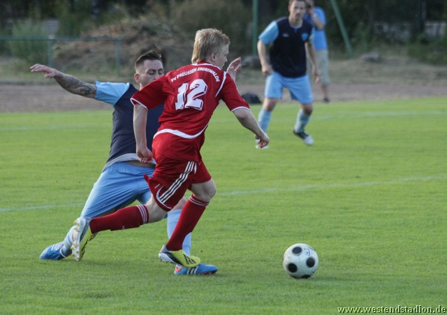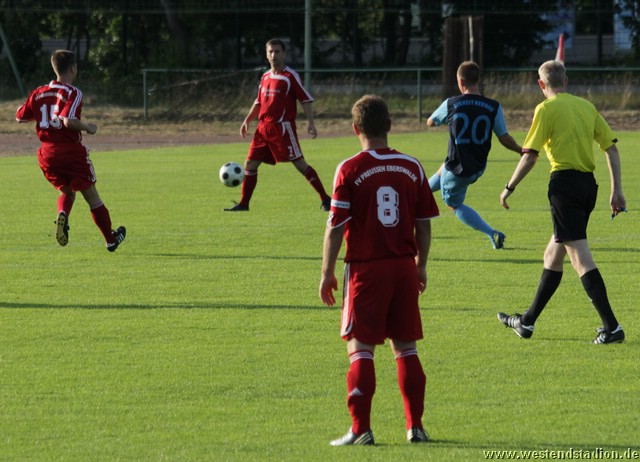 In dem an Torgelegenheiten armen Spiel setzten zunächst die Gäste die Akzente. Ein Fernschuss wurde von Swen Lichtenberg über die Querlatte gelenkt. Preussen setzt ebenso Distanzschüsse durch Christian Schlegel an, diese verfehlen das Gehäuse aber deutlich. die Gäste erarbeiten sich Ecken und Freistössen und kommen durch einen abgefälschten Fernschuss zur Führung. Preussen danach mit mehr Druck nach vorne. Fünf Minuten vor der Pause dann Glück, das eine Flanke abgefälscht wird und genau bei Kenny Ladewig landet, dieser schafft es im zweiten Versuch den Ball am Torwart vorbei zu bringen. Nach kurzer Diskussion des Schiedsrichters mit dem Assistenten wird der Treffer gegeben. In der zweiten Hälfte wurde bei Preussen doppelt gewechselt, aber erneut beginnen die Bernauer agiler. Ein Innenpfostenschuss hätte auch der erneute Rückstand sein können. Danach bestimmen die Eberswalder immer mehr das Spiel. Der Gegner bekommt kaum noch Konterchancen. Allerdings bleiben auch alle Bemühungen der Preussen vor dem Strafraum hängen. Die Abwehr der Gäste steht sehr sicher und räumt alles ab. Wieder sind es nur wenige Fernschüsse die Torgefahr bringen, aber nicht zum Torerfolg führen. Auch ein Freistoss von Steven Zimmermann wird aus der kurzen Ecke gekratzt und ein abgefäschter Schuss von Tobias Koepnick geht knapp links vorbei. So blieb es beim Unentschieden, das dem Spielverlauf entspricht und deutlich zegte das die Konditionsphase noch in vollem Gang ist.