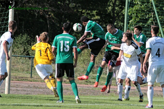 Vom Anpfiff weg spielte Preussen aggressiv und blieb in Zweikämpfen gegen die Werderaner überlegen. Druck nach vorne kam nach Pässen in die Spitze, wo Ceif Ben-Abdallah einen Ball von Steven Zimmermann halblinks annahm und in der 10.Minute selbst in den Strafraum vorlegte. Der Keeper hatte gegen den halbhohen Abschluss keine Chance. Danach beherrschte man eine halbe Stunde das Spiel nach Belieben, verpasste es aber gegen passive Gäste nachzulegen. Ein Konter von Steven Zimmermann der über 30 Meter in den Strafraum dribbelte und dort vom Veteidiger gestoppt wurde, brachte dann einen Bruch ins Spiel. Denn der heutige Preussen Kapitän blieb verletzt liegen und musste anschliessen 5 Minuten außerhalb behandelt werden. In Überzahl kam Werder erstmals offensiv in Aktion und hatte mit einem knapp neben den linken Pfosten gesetzten Alleingang die erste Großchance. Preussen hatte sich nun immer wieder Kontern der Gäste zu erwehren und zeigte in der Defensive nicht mehr die Konsequenz der ersten halben Stunde. Unmittelbar vor der Pause dann ein erneuter Allleingang über halblinks. Lennart Peter, der den zuerst Ball erwischt , kann nicht verhindern das der Stürmer sich einhakt und fällt. Der Schiedsrichter gibts gegen Proteste der Eberswalder den Strafstoss, der zum Ausgleich verwandelt wird.