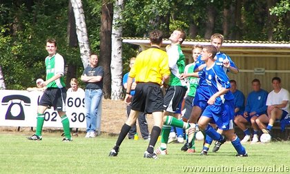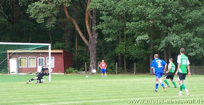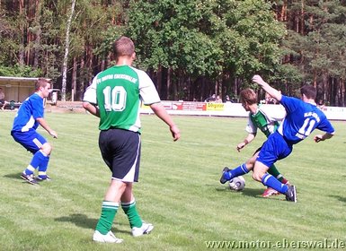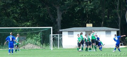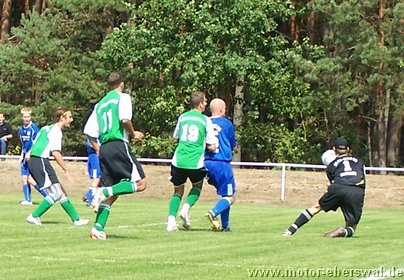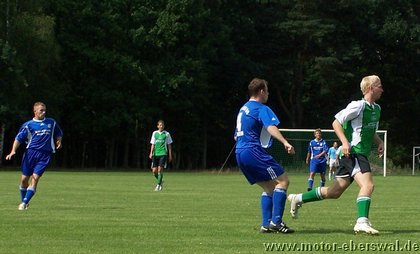 Gegen den Landesligisten der Südstaffel FV Blau Weiss 90 Briesen, unterlag die Reserve des FV Motor Eberswalde mit 3:1. Aus Eberswalde nur eine Rumpfelf angereist, wobei man es wörtlich nehmen konnte. Denn die Reservebank blieb diesmal leer und die Aufstellung wurde noch mit den beiden 17jährigen A-Junioren Marcus Bülow und Martin Präger aufgefüllt, die ihre Sache sehr gut machten. Trotz der Notbesetzung gehörte die erste halbe Stunde den Eberswaldern, die sich 3 hochkarätige Chancen herausspielten und mit gefälliger Ballführung die Defensive der Briesener sichtlich überraschten. Jeffrey Neumann scheiterte (4. und 16.) alleine vorm Torwart. Marcel Kelch und Michael Prost ließen weitere gute Gelegenheiten aus. Die Hausherren kamen nur selten zum Zug und setzten lediglich zwei Distanzschüsse eindeutig zu hoch an. In der 28.Minute jedoch bewiesen sie Effektivität und nutzten einen Stellungsfehler eiskalt so das Harnisch hatte keine Mühe hatte zur Führung zu verwandeln. Die Waldstädter ließen sich davon nun etwas beeindrucken und verloren im Mittelfeld häufiger die Zweikämpfe, welches sie zuvor eindrucksvoll beherrscht hatten. Zur gradlinigeren Spielweise der Hausherren kam unmittelbar vor der Pause auch noch Glück, so nahm Bularski eine lange Flanke auf die linke Seite an der Strafraumgrenze direkt und traf mit einem Innenpfostenschuss volley zum 2:0. In der zweiten Hälfte beherschte nun Briesen die Szenerie und vergab bis zur 60.Minute seinerseits mehrere gute Gelegenheiten, wobei man in einigen Aktionen doch das mangelnde Zusammenspiel in der Eberswalder Formation sehen konnte. Als der, auch schon in Eberswalde aktive, Briesener Neuzugang Mlynarczyk aus Nahdistanz zum 3:0 traf, war das Spiel gelaufen. Allerdings gab sich die sehr junge Motor Formation nicht auf und spielte in der restlichen Spielzeit weiter sehr ansehnlich nach vorne. Jeffrey Neumann (71.) und Marcel Kelch (75.) hätten den längst verdienten Ehrentreffer machen müssen, fanden jedoch jeweils im Briesener Keeper Sebastian Schlieter ihren Meister. Als Michael Prost in der 80.Minute von seinem Gegenspieler im Strafraum umgestoßen wurde, gab es Strafstoss, aber auch Marc Beuster scheiterte an der Reaktion des Schlussmanns. Zum Ehrentreffer sollte Motor II dann durch eine "zweite Chance" vom Punkt kommen. Denn ein Foul an Malte Neumann, der in höchster Not von zwei Briesener Verteidigern im Strafraum unsanft gebremst wurde, zeigte der Schiedsrichter nochmals auf den Punkt. Diesmal übernahm Motors Schlussmann Swen Lichtenberg die Ausführung und überwandt seinen Kollegen, wobei dieser noch mit der Hand am Ball war, ihn aber nicht stoppen konnte. Eine Woche vor der Saison war Motors Reserve einmal mehr gleichwertig, vergab aber zu viele Chancen und gab so die Partie ab. Gegen die starken Gegner, die gleich auf die Mannschaft warten, sollte das möglichst schnell überwunden werden.