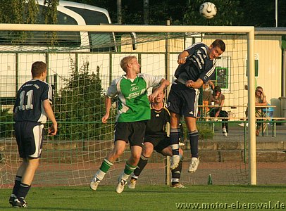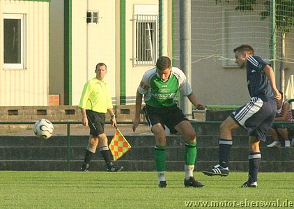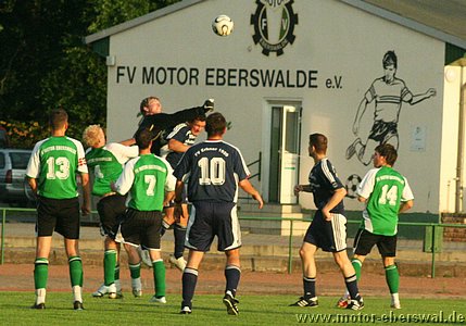 Motor II verliert in der ersten Runde des Landespokals gegen Landesligisten FV Erkner nach Verlängerung mit 1:3. Dabei zeigte man sich vor allem in der ersten Halbzeit mit geradlinigem Spiel und guten Torchancen gleichwertig. Bereits Chancen durch Tobias Marz (21.) und René Heinrich (33.)hätten die Führung bringen können, beide Spieler waren frei durch. Erkner nutzte in der 35. durch einen Heber aus Nahdistanz beinahe einen Stellungsfehler zur Führung, der Ball ging aber knapp übers Gehäuse. In der 38.Minute spekulierte die Hintermannschaft der Gäste auf Abseits, über sah dbei aber den von hinten startenden Tobias Marz, der vorm Torwart noch auf Robin Schwartz ablegte und dieser zum 1:0 ins leere Tor einschoss. Zu Beginn der zweiten Hälfte durch Robin Schwartz die Chance zum Nachlegen, aber ein Schuss krachte nur gegen den Außenpfosten. Ab der 60.Minute zog sich Motor II immer weiter zurück und setzte auf Konter, brachte damit aber auch die Gäste ins Spiel zurück, die nun Druck aufbauen konnten. Nachdem sie bereits eine Reihe gefährlicher Standardsituationen vors Tor gebracht hatten, waren sie durch M.Neumann in der 69.Minute erfolgreich. Danach Motor mit nur noch wenigen Kontergelegenheiten, diese hatten es aber jeweils in sich. So verpassten Tobias Marz, Michael Prost und der eingewechselte Eric Klatt die erneute Führung. Ansonsten machte Erkner aber immer mehr das Spiel und drängte Motor in die Verteidigung, kurz vor Ende der regulären Spielzeit hatte man Glück als Kopfball aus wenigen Metern daneben ging. In der Verlängerung liessen bei der Motor Reserve deutlich die Kräfte nach, so das die Entlastung immer spärlicher wurde. Nach einer Kopfballverlängeung war erneut Neumann zur Stelle und erzielte die Führung für Erkner. Diese behielten auch in der restlichen Spielzeit das Geschehen im Griff, spätestens nach dem zweiten Erkner Treffer aus einem Spielzug über die linke Seite war das Spiel entschieden. Motor nur noch mit einem Konter über René Heinrich und Tobias Marz gefährlich. Allerdings auch mit Glück das Markus Gebhard mit einer Glanzparade in der 117.Minute den 4.Gegentreffer verhinderte.
