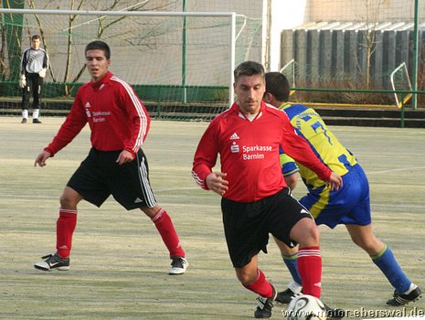 Im ersten Freiluftspiel des neuen Jahres schaffte Motor einen 3:2 Sieg gegen den Landesligisten aus Rüdersdorf. Vor allem in der ersten Halbzeit war Motor klar überlegen und führte verdient, auch wenn Christian Schlegel, Frank Ploen und Rafet Ates weitere Großchancen ausliessen. Die Führung gelang Mirko Rücker, der nach einem Freistoss von Steffen Sasse per Kopf zur Stelle war und einer schönen Einzelleistung von Frank Ploen, der sich an der rechten Grundlinie durchsetzte und den Ball in die lange Torecke schob. Die weitgehend wirkungslosen Gäste hatte zwei Konter, die sie jedoch nicht gefährlich abschliessen konnten. Kurz vor der Pause kamen sie erstmals zu Chancen und erzielten im zweite Nachschuss den Anschlusstreffer. Rafet Ates stellte im Alleingang mit einem Lupfer kurz nach Wiederanpfiff dem alten Abstand her, der in der Folgezeit hätte ausgebaut werden müssen. Rafet Ates fehlte nach einer Flanke von Christian Hintz nicht viel, Christian Hintz und Thomas Döhring hatten den vierten Treffer auf dem Fuß. Rüdersdorf erst in der Schlussphase nochmal nennenswert vor Adrian Peters, der beim erneuten Anschlusstreffer, nach einem Stellungsfehler der Hintermannschaft keine Chance hatte. Angesichts der wenigen Trainingseinheiten beider Teams vor dem Spiel noch kein Maßstab, aber ein insgesamt ansehnliches Spiel zum Auftakt.