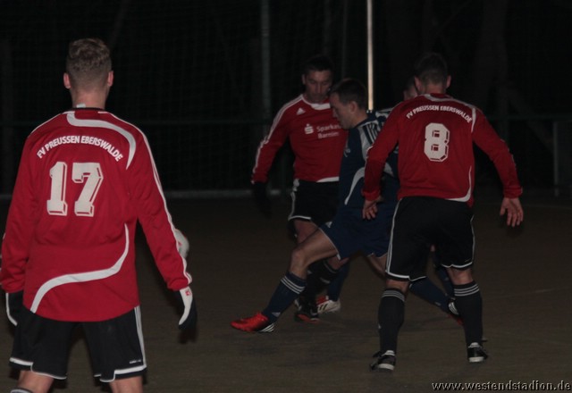 In den ersten 20 Minuten war Preussen bereits spielbestimmend, es lief aber vor dem Tor noch wenig zusammen. Finow konterte zweimal, brachte aber auch keinen zwingenden Abschluss zu stande. Erst nach einer knappen halben Stunde gelang es durch ein Dribbling von Gen Murakami an der rechten Grundlinie den Ball vors Tor zu bringen, ein Finower lenkte ihn von da ins leere Tor. Preussen blieb nun dran und erhöhte wenig später durch einen Fernschuss von Steven Zimmermann, bevor Yasu Osato über die linke Seite einen Konter mit dem dritten Tor abschloss. In der zweiten Hälfte war Preussen deutlich überlegen und gestattete Finow nur noch wenig. Einzig einmal war Artur Holtzmann frei durch, verstolperte den Ball aber noch vor Matthias Krause der so keine Mühe hatte. Tore gab es erst wieder in der Schlussphase. Zuerst schisst Gen Murakami einen Schuss von Steven Zimmermann aus abseitsverdächtiger Position ins Tor, dann ist es ein sehenswertes Solo von Kenny Ladewig, das dieser selbst zum 5-0 abschliesst. Der sechste Treffer file nach einem Zusammenprall von Steffen Sasse mit seinem Gegenspieler nach dem der Vorteil weiterlief und zunächst Tobias Koepnick den Ball in den Strafraum bringt und Kenny Ladewig aus dem Gewühl verwandelt. Am Ende hätte es sogar noch bitterer kommen können doch ein Tor wurde wegen Abseits nicht gegeben und Erik Hielscher schob einen Ball freistehend an den Pfosten des leeren Tors. Aber auch so stimmte nicht nur das Ergebnis, auch das Spielerische war verbessert. Am Freitag kommt mit Bernburg ein Verbandsligist aus Sachsen-Anhalt und sollte ein echter Prüfstein in der Vorbereitung sein.
