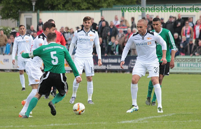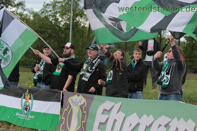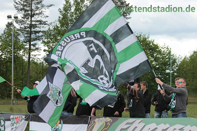 Bei 4 Klassen Unterschied war natürlich das Ergebnis zweitrangig. Union agierte mit Feldspieler im Tor, während der Keeper im Sturm aufgeboten wurde, außerdem war es ein Auslaufen nach dem erst am Vortag absolvierten letzten Zweitligaspiel. Preussen suchte seine Chance, nutzte diese aber nicht. Eric Mba und Steven Zimmermann hatten in der ersten Halbzeit je einen Alleingang, nutzten die Gelegenheiten aber nicht. Union dann mit einem Konter in Führung, die sofort ausgebaut wurde. In der zweiten Hälfte dann weniger Tempo. Preussen wehrte die Unioner am Strafraum ab so gut es ging und nutzte seinen einzigen Konter , den Steffen Sasse (in seinem letzten Spiel für Preussen) mit einem Nachschuss verwandelte. In der Schlussphase wurde dann , wie üblich in solchen Spielen noch man wild durchgewechselt. Das war dann auch zu merken und Union lies nun Chancen aus, bis auf eine, die dann auch den Endstand darstellte. Für einen Verbandsligisten wars ansprechend. Stimmung war bei Union fast garnichts zu hören, Preussen wenisgten "am Misthaufen" mit ein paar Aktiven.