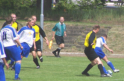 Es war eine absolute Notaufstellung, mit der Motor II beim BSC Rathenow auf deren Ausweichplatz in Groß Wudicke antrat. Ohne die beiden Rot gesperrten Marcel Kelch und René Heinrich (fehlen auch nächstes Spiel), glänzten noch 4 weitere einsatzfähige Spieler mit mehr- oder weniger überzeugenden Ausreden durch Abwesenheit. Stattdessen schnürte Trainer Frank "Jumbo" Wiedemann nochmal die Fußballschuhe in der Zweiten und auch Cotrainer Frank Drogoin und Pressereporter Christian Melchert standen als Wechsler auf dem Spielbogen. Außerdem waren die A-Junioren Raik Packheiser und und Christoph Schirrmeister in der Startaufstellung. Die ersten 30 Minuten waren ohne jeden sportlichen Höhepunkt, ein Mittelfeldspiel, das zwar ganz gut anzuschauen war, aber nichts brauchbare vor die Strafräume brachte. Motor II konnte trotz der personellen Schwächung sehr gut mithalten und wirkte sogar etwas spritziger. Dennoch gehörte die erste Torchance die diese Bezeichnung verdient hatte, den Rathenowern, aols ein Stürmer nach einer Ecke von der Strafraumgrenze knapp über Tor schoss. Nun kam auch mehr Bewegung herein, aber die Stürmer von Motor II waren trotz einiger Schüsse zu ungenau.