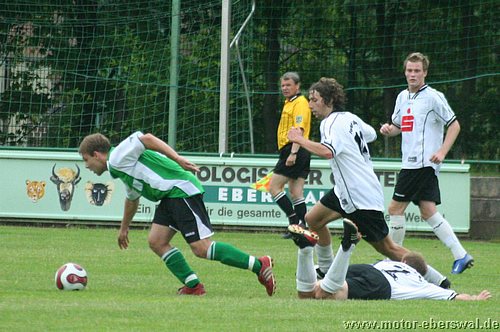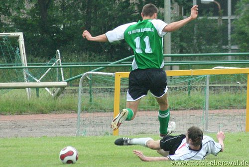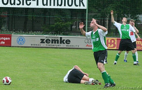Der mit Torsten Maerz, Ferry Manteufel, André Germer und Thomas Döhring vertärkten Mannschaft gelangen kaum gute Spielzüge, im Gegenteil gegen die körperlich robusten und cleverer spielenden Potsdamer kam man überhaupt nicht ins Spiel. Bereits nach wenigen Minuten waren diese mit einem Konter erfolgreich, Jenner startete über die linke Seite durch und bediente den in der Mitte frei durchlaufenden Koschan. Motor II versuchte zu antworten, jedoch war nach einem kurzen Anrennen nach dem Rückstand der Schwung schon wieder raus. Stattdessen bestimmte Fehlpässe und umständliches Spiel die Szenerie. Christian Hintz vergab die beste Gelegenheit, als ihm frei durchlaufend der Ball am Fuß versprang. Waren bei Standardsituationen gefährlich und hatten das Spiel weiteghend im Griff. Den zweiten Treffer hatte erneut Koschan auf dem Fuß, Danilo Kowalzik klärte jedoch vor ihm, überwand damit jedoch auch seinen Torwart und der Ball ging ins eigene Tor. Motor II fiel nun in völlige Verunsicherung. Zwar folgten noch zwei wütende Angriffe, wobei Christian Hintz Patrick Turowski in Position brachte der mit einem Drehschuss verzog. Im Gegenzug jedoch bereits die Vorentscheidung, einen katastrophalen Stellungsfehler nach einer Flanke nutzte Hintze aus fünf Metern zum 3:0. In die zweite Hälfte kam Motor nach zwei Wechseln wenigstens mit besserem Zweikampfverhalten und erarbeitete sich wenigstens ein leichtes Übergewicht im Mittelfeld, auch wenn es weiter keine klaren Torgelegenheiten gab. Die Postsdamer brauchten jedoch nur abzuwarten um ihre Konterstärke auszuspielen. Als Koschan nach einer Flanke gegen Torsten Maerz vor dem Tor zum Kopfball kam, schlug es zum 4:0 ein, womit alle Messen gesungen waren. Den Rest des Spiels wurde auf beiden Seiten nur noch auf 'gut Glück' gespielt. So flogen lange Bälle in beide Richtungen und fanden selten einen anspielbaren eigenen Spieler. Ausnahme war ein Pass von Tobias Schmidt auf Christian Hintz, der plötzlich frei durch war, am Schuss aber durch einen Zupfer gehalten wurde. Als letzter Mann erhielt der Verteidiger dafür die Rote Karte. Aber auch in Überzahl spielte Motor II nicht viel besser, Tobias Schmidt mit einem Kopfball und René Heinrich der den Keeper von der Strafraumgrenze prüfte waren nahe am Ehrentreffer. In der Schlussphase gelang es Babelsberg nochmal mit zwei gegen zwei zu Kontern, diese Aktion wurde mit dem 5:0 abgeschlossen. In der Schlussminute konnte Chritian Hintz mit einem Volleyschuss noch das 5:1 erzielen. Durch die Siege von Nauen und Bernau ist der 13.Platz nicht mehr zu erreichen, der nach dem Oberligaverzicht von Neuruppin letzter Nichtabstiegsplatz ist.