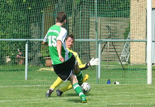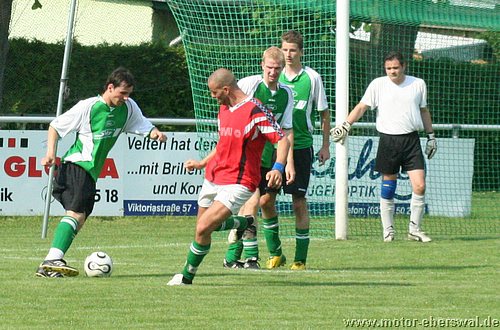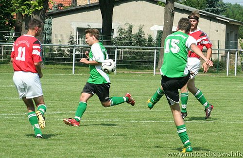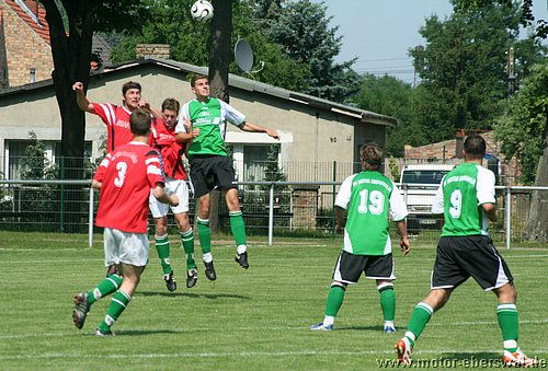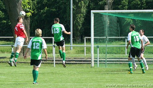 Motors Reserve übertraf sich in Velten im Auslassen guter Torgelegenheiten und verlor so erneut deutlich. Mit einer Kerntruppe von nur 12 Spielern reiste man nach Velten an, wo man sich bei Temperaturen von über 30 grad auf dem Platz zunächst sehr gut hielt. Nach Ballverlusten der Veltener gab es zwei gute Konterchancen, aber sowohl Martin Präger als auch Marcel Kelch konnten diese nicht nutzen. Velten war vor allem bei Standardsituationen gefährlich, auch weil die Abwehr von Motor II kein konsequentes Deckungsverhalten zeigte. So trafen die Hausherren zweimal das Außennetz und setzten mehrere Kopfbälle knapp vorbei. Nach einer weiteren Ecke war es dann soweit, gleich zwei Verteidiger können den Ball vor dem Veltener Singer nicht klären und dieser köpft un bedrängt ein. Die anschließende Verwirrung in der Abwehr wird konsequent genutzt und so liegt der Ball schon drei Minuten später wieder im Tor von Dennis Soth. Nach einer Flanke waren gleich zwei Veltener völlig freigelassen worden. Motor spielte dennoch im Spiel ordentlich mit, Martin Präger stand nach einer Flanke frei vorm Tor und traf auch, allerdings lag beim Pass zuvor eine Abseitsstellung vor. Richtig alt sah die Deckung beim dritten Treffer der Veltener aus. Nachdem diese die Abseitsfalle ausgehebelt hatten, lief Singer allein aufs Tor. Der Motor Keeper konnte zwar halten, war gegen den Nachschuss aber machtlos. In der zweiten Hälfte näherte sich das Spiel schon reichlich dem Sommerfußball an, was aber vor allem die Defensive beider Teams betraf. So konnte die Stürmer auf beiden Seiten oft frei vor dem Tor auftauchen, nur das die so ergebenden Chancen alle kläglich vergeben wurden. Michael Prost verzog dreimal freistehend übers Tor, Christian Hintz vergab einen Alleingang weil er den schon sitzenden Keeper nicht umspielte sondern auf den Körper schoss, André Dietze rutschte bei seinen Schuss mit dem Standbein weg. Auch die Veltener hatten Gelegenheiten zu hauf, nutzten jedoch nur eine. Als von der linken Grundlinie geflankt wurde behinderten sich in der Mitte zwei Motor Abwehrspieler und der Torwart gegenseitig und der Veltener Brychzy 'konnte den nicht mehr vorbei köpfen'. Der Ehre zuviel wäre in dem Spiel wohl der Ehrentreffer gewesen. Als Martin Präger in der 82.Minute vom Torwart vom herauseilenden Torwart von den Beinen geholt wurde gab es Elfmeter. Den schwach geschossenen halbhohen Ball von Michael Prost parierte der Keeper aber.