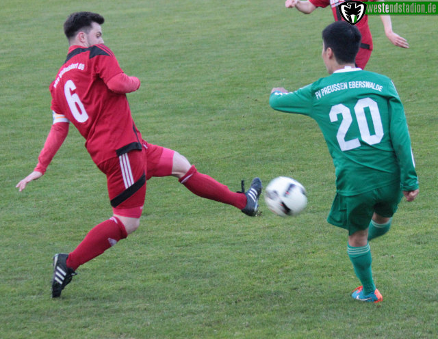 Denn vor der besagten Szene hatte Waltersdorf nicht einmal aufs Tor geschossen. Zwar waren die Hausherren lange im Ballbesitz, wenn die Kugel aber mal verloren wurde, konterten die Preussen sehr gekonnt. Raif Yaman legte auf "Erik" auf und der kam vor der Torline knapp zu spät. Derselbe Spieler schob den Ball nach einem Dribbling knapp neben den kurzen Pfosten und weiter gings mit den Eberswalder Großchancen, nach 20 Minuten die dickste, Yusaku Wasaki schiesst gegen den langen Innenpfosten der Ball geht aber nicht rein. Dann kam die besagte Szene und da Tobias Koepnick als einzigste Spieler schon Gelb gesehen hatte, musste er mit der zweiten Gelben vom Platz. Der Elfmeter wurde verwandelt, danach Preussen sichtlich angeschlagen , so das noch vor dem Pausenpfiff zwei weitere Gegentore fielen, damit war natürlich alles entschieden. In der zweiten Halbzeit tat man sich dann nicht mehr unnötig weh. Preussen hatte zwar mehrere gute Spielzüge kam aber zu keinem nennenswerten Torabschluss. Waltersdorf stellte den Endstand mit einem Volleyschuss nach einer Flanke her.