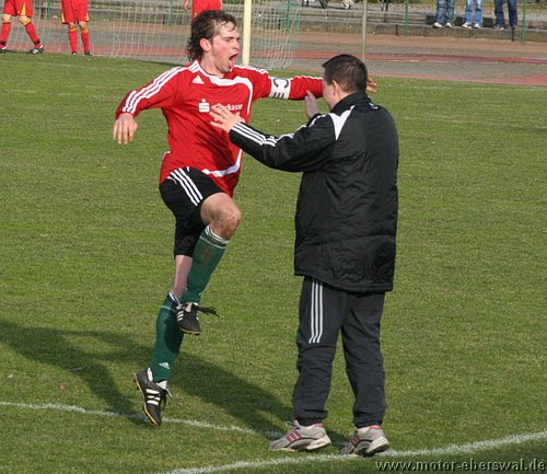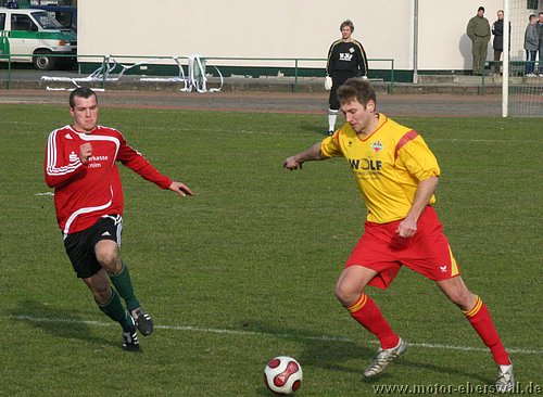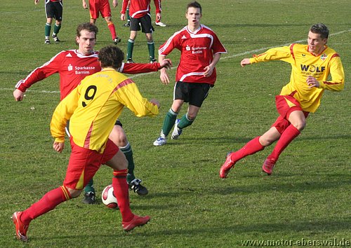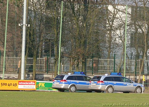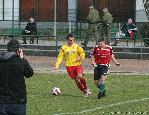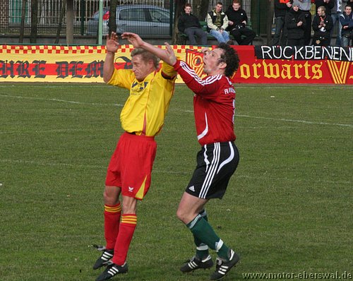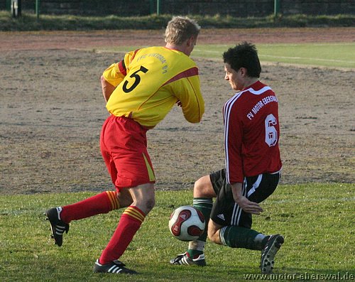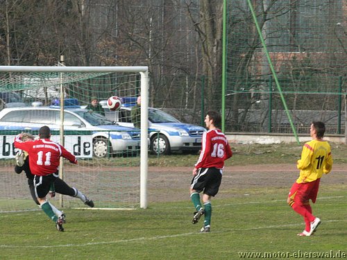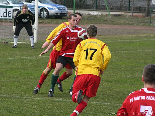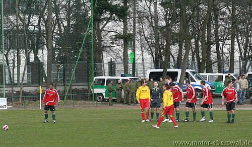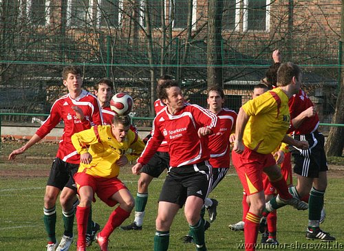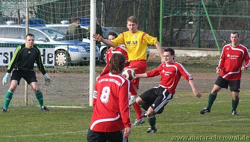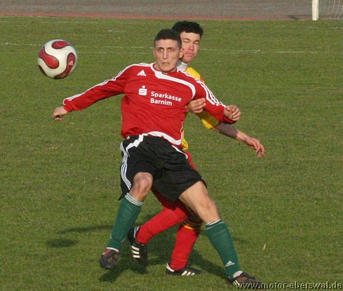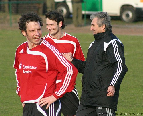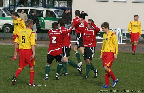 Gegen die ohne 7 Stammspieler angetretenen Frankfurter, denen viele erfahrene Kräfte fehlten fuhr Motor den dritten Sieg der Rückrunde ein. Dabei zeigte man gleich zu Beginn das beweglichere Spiel und die beiden Spitzen Rafet Ates und Johannes Perecke enteilten mehrfach ihren Bewachern. Wobei Persecke von 3 Frankfurtern im Strafraum nicht gestoppt werden konnte, seinen Abschluss aber aus 5 Metern gegen das Außennetz setzte. Frankfurt durchgehend mit der Sicherung des eigenen Gehäuses beschäftigt, kam nur selten mit Tempo nach vorne. Auch die im Spiel der Hinrunde so entscheidenden Standardsituationen ohne echte Gefahr für das, heute von Torsten Miethe gehütete Eberswalder Tor. Dennoch hatten auch die Gäste eine Gelegenheit, als ein über die linke Seite vorgetragener Angriff am Elfmeterpunkt aus der Drehung aufs Tor gebracht wurde und knapp neben den Kasten vorbei ging. In die zweite Hälfte kam Frankfurt zunächst mit einem schwungvollen Spielzug, der jedoch in einen Eberswalder Konter mündete. Johannes Persecke schien schon zu weit in Rochtung Eckfahne abgetrieben zu sein, als er seinen Gegenspieler ausspielte und nur noch Rafet Ates bedienen musste der völlig frei aus wenigen Metern vor dem Tor zur Führung verwandelte. Frankfurt reagierte mit hektischen Angriffen gegen eine sich zurückziehende Eberswalder Mannschaft, wobei es einige Kopfballgelegenheiten gab und einen Schuss aus spitzem Winkel der knapp gegen das Außennetz ging. Motor eröffenten sich nun immer mehr Konterräume die vor allem Martin Präger und Christian Rauch mit Pässen auf die beiden Stürmer nutzten. Rafet Ates setzte sich so durch, kam jedoch bei dem halbhohen Ball gegen den Frankfurter Keeper zu spät. Dieser fing den Ball jedoch nicht sicher und der Motor Stürmer setzte nach. Obwohl der Frankfurter den Ball dann in den Händen hatte, entglitt er ihm beim Hinfallen erneut, Rafet Ates musste sich kein zweites mal bitten lassen und schob den Ball ins leere Tor. Die Entscheidung fiel bereits mit dem nächsten Konter. Martin Präger hatte gegen die auf Abseits spielende Frankfurter Abwehr auf Johannes Persecke gespielt, hinter dem die Verteidiger nicht hinterher kamen und auch der Torwart chancenlos blieb. Nach dem 3:0 hatte Frankfurt sich weitgehend aufgegeben, auch wenn Motor nun zumeist in der Defensive stand, konnten sie in keiner Situation echte Torgefahr erzeugen. Die Abwehr um Kristian Stelse und Mirko Rücker blieb stehts Herr der Lage und sorgte mit schnellem Umschaltspiel für die nötige Entlastung. In der Nachspielzeit wurde ein solcher Entlastungsspielzug über die rechte Seite ausgespielt, wo der eingewechselte Erik Klein zunächst am Frankfurter Keeper scheiterte, dann aber Thomas Döhring entlang der Grundlinie doch aufs Tor zulaufen konnte und Rafet Ates auf Links bediente. Desses Bogenlampe konnte auf der Torlinie nicht geklärt werden stattdessen schlug es zum vierten mal im Frankfurter Kasten ein. Danach pfiff der Schiedsrichter die Partie nicht nochmal an und eine in der Winterpause sicher nicht für möglich gehaltene Serie von drei Siegen in Folge war perfekt. Eine besondere Genugtuung für Frieder Andrich dem es zum ersten Mal mit Motor gelang gegen seinen langjährigen Verein zu gewinnen.