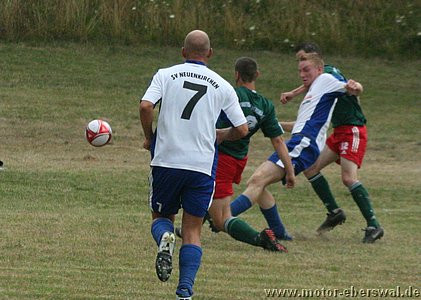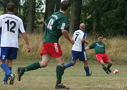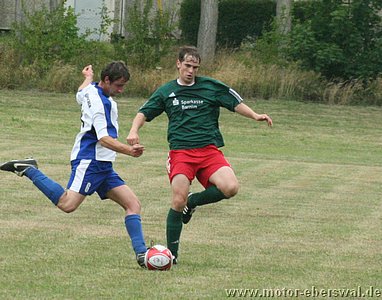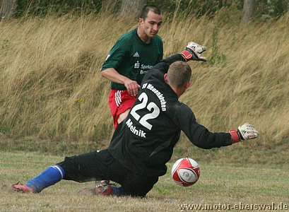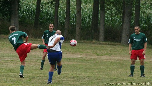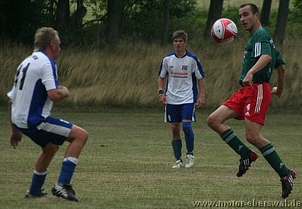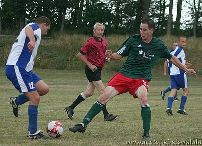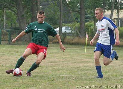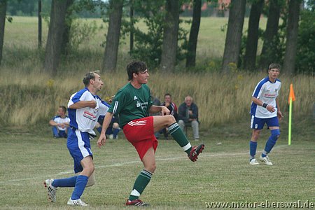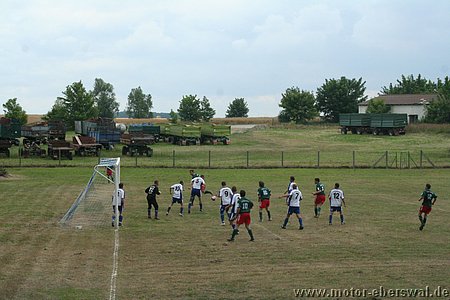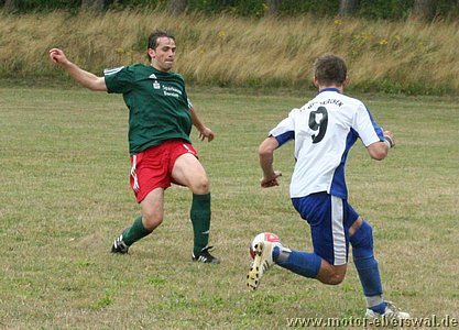 Der SV Neuenkirchen (1.Kreisklasse Rügen) war zweiter Gegner im Trainingslager und machte es Motor in der ersten Halbzeit recht schwer. Denn ein unebener Platz und ein konsequenter Zweikampfeinsatz verhinderten zunächst das Motor seine technische Überlegenheit ausspielen konnte. Im Gegenteil, die erste Torchance im Spiel hatten die Hausherren als bei einem Konter ein Stürmer freie Bahn hatte aber übers Tor schoss. Motor danach zwar spielbestimmend, aber am Strafraum zu umständlich im Abschluss zu überhastet. Es dauerte bis zur 33.Minute, als Christian Rauch mit einem Nachschuss die Führung gelang. Motor baute nun deutlich mehr Druck auf und zwang die Neuenkirchener sich auf die Verteidigung zu beschränken. Rafet Ates und Thomas Döhring legten bis zur Pause noch zum 3:0 nach, zufrieden schienen die Eberswalder aber auch mit diesem Ergebnis nicht zu sein, so drehten sie im zweiten Abschnitt richtig auf und trafen auf deutlich gebrochenen Widerstand der Rüganer. Rafet Ates, André Germer und Mehmet Kaya schraubten das Ergebnis schnell wieder in die Höhe, Neuenkirchen hatte noch zwei Torchancen, zielte aber zu ungenau. Danch spielte nun noch Motor und der inzwischen als Stürmer eingewechselte Marcus Haase konnte ebenso einen Doppelpack erzielen wie Christian Rauch, Mehmet Kaya, André Germer und Thoralf Krause dem mit dem dreizehnten Treffer der Schlusspunkt gelang, da konnte selbst der, für nur 15 Zuschauer aufgebotene Stadionsprecher nicht mehr mitzählen.
