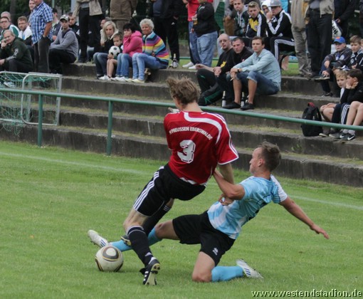 Gleich die erste Aktion bringt die Führung, Christian Schlegel setzt sich durch und Marcus Bülow schliesst ab. Torgelow danach längere Zeit ohne Torgefahr und nicht zu sehen das es mittlerweile zwei Spielklassen Unterschied zwischen den Teams sind. Erst nach ein paar Standardsituationen kommen die Gäste ans Tor heran, eine klare Gelegenheit haben sie aber nicht. Auf dem engen Nebenplatz verteidigt Preussen sehr konsequent und taucht auch immer wieder gefährlich vorne auf. Zu Beginn der zweiten Halbzeit wird dann nachgelegt. Eine Ecke von Rico Musick köpft Kristian Stelse ein. Danach fühlt sich Torgelow doch gekratzt und macht Druck. Nach einer Stunde lässt dann bei Preussen doch die Konzentration und vermutlich die Kraft etwas nach. Jedenfalls bekommt Torgelow die Lücken und nutzt die Fehler. Nach einem Ballverlust kann von Grundlinie geflankt werden, ein freistehender Spieler zieht den Kopf ein und der dahinter macht per Kopf den Anschlusstreffer. In der 75. Minute dann der Ausgleich, nachdem man einen Zweikampf verliert und Abseits diesmal nicht funktioniert. Aber selbst in der Schlussphase hat Preussen noch zwei Chancen nochmal in Führung zu gehen, Marcus Bülow und Paul Kallies schiessen bei Kontern knapp vorbei. Insgesamt sehr ordentliches Testspiel, zumal Torgelow schon eine Woche näher am Saisonbeginn ist und bei Preussen noch die Laufphase ist. Noch haben auch einige Spieler gefehlt, aber das sah ganz gut aus.
