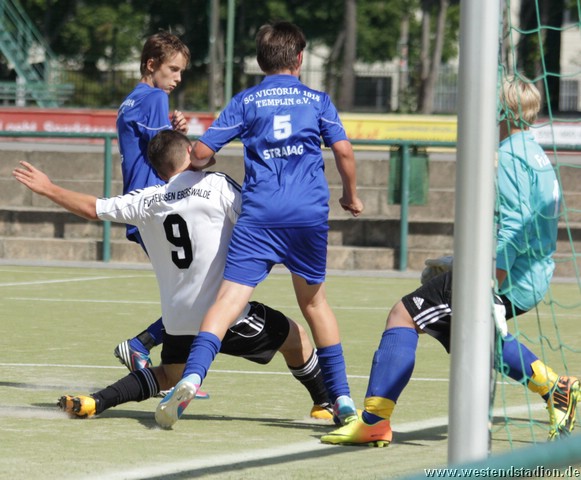 Gleich von Beginn an wurde der Gegner in seiner eigenen Hälfte beschäftigt. Die frühe Führung durch einen Freistoss kam nicht zu stande, da der Ball direkt, statt indirekt verwandelt wurde. Allerdings hatte man weiter gute Chancen und Robert Schmidt machte dann auch nach Pass von Lucas Brobowski das erste Tor. Templin nur mit wenigen Vorstössen, die zunächst ohne zwingenden Abschluss blieben, daher wichtig für Eberswalde das das zweite Tor nachgelegt wurde, aus dem Gewühl nach einem Eckball wird der Ball von Robert Schmidt im Tor untergebracht (kann aber auch schon vorher hinter der Linie gewesen sein). In der zweiten Hälfte macht Templin zwar mehr , rückt aber auch weiter auf, so das Preussen nun mehr auf Konter spielt. Lucas Brobowski wird bei einem solchen im Strafraum per Foul gestoppt. Robert Schmdidt verwandelt sicher. Zehn Minuten später dann macht Felix Kasch durch eine Direktabnahme den 4.Treffer. Templin bekommt erst in der Schlussphase zwei Großchancen. Jeweils geht der Ball knapp vorbei.
