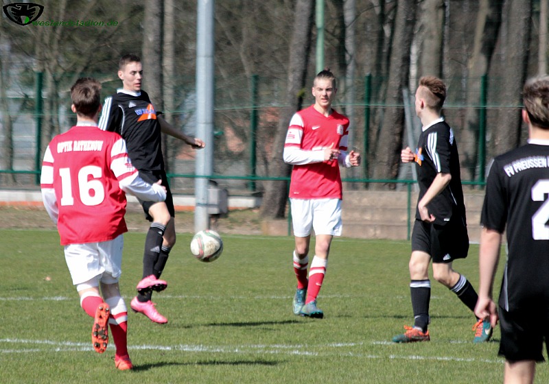 In der ersten Halbzeit die Gäste mit Vorteilen vor allem im Ausnutzen der Wackler in der Hintermannschaft. So vertändelte die Spielgemeinschaft Eberswalde/Schwedt immer wieder Bälle vorm Strafraum. Dies auch Ausgangspunkt für die Führung der Gäste die konsequent nachsetzten. Die größte Ausgleichschance wurde ausgelassen, als ein Heber nach einer zu kurzen Abwehr des Rathenower Torwarts neben den Kasten ging. Den Gästen gelang die Vorentscheidung nach einer klaren Abseitsstellung , die der Einzelschiedsrichter nicht sah, der Alleingang durch die Mitte wurde so mühelos verwandelt. In der zweiten Hälfte machte der Gast dann wenig und die Spielgemeinschaft bestimmte das Spiel, dabei kam aber trotz eines Lattentreffers und einiger schöner Spielszenen nichts heraus.