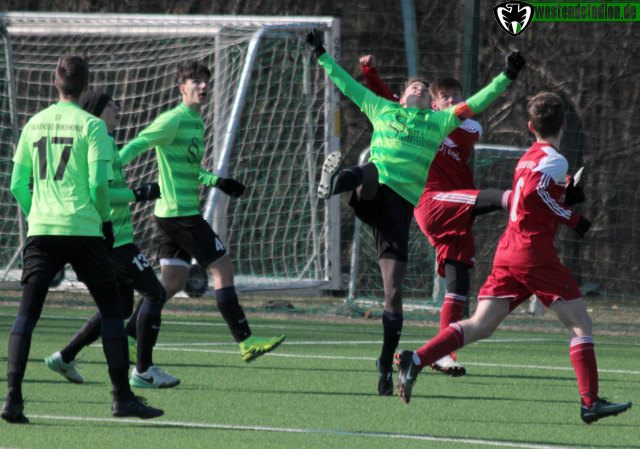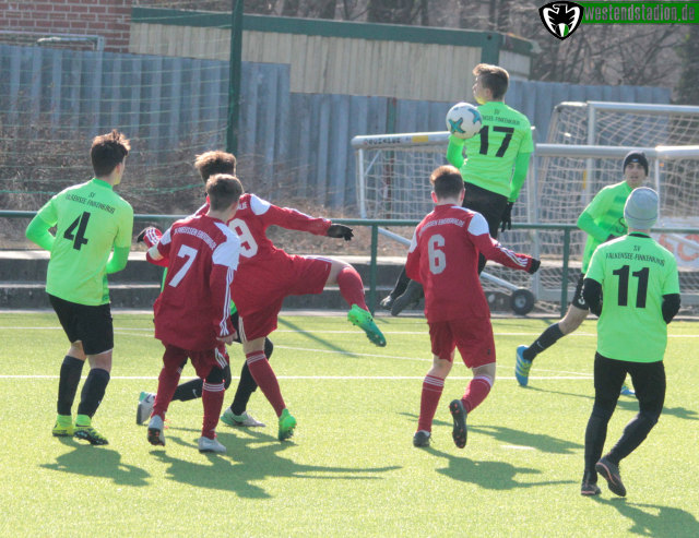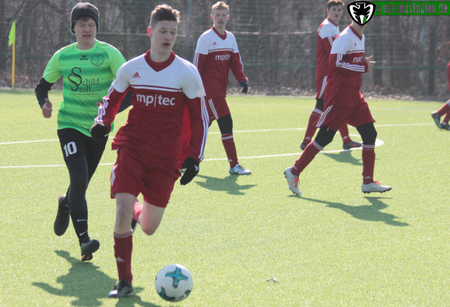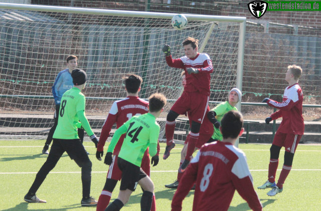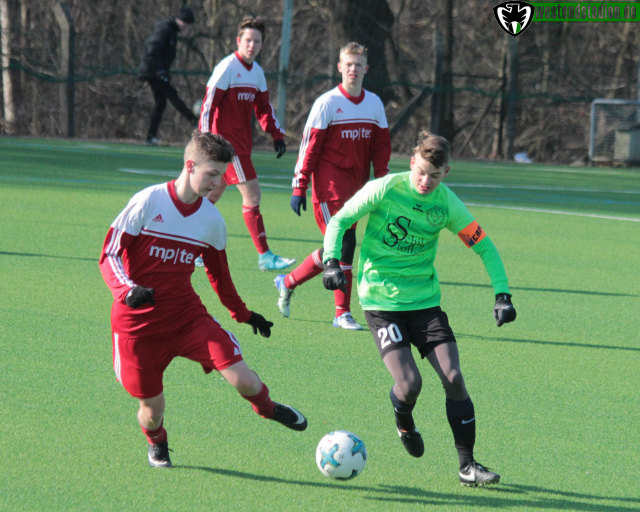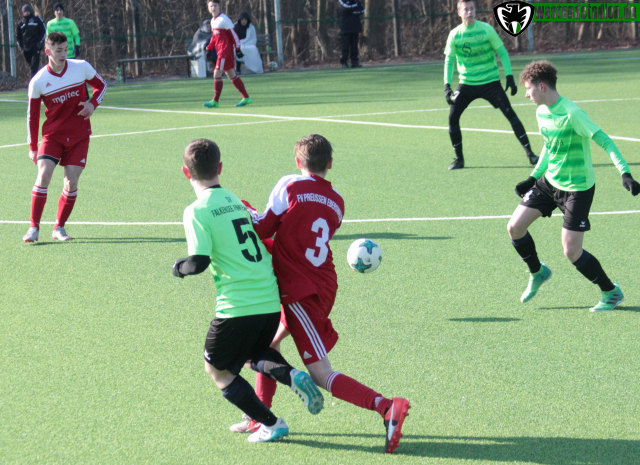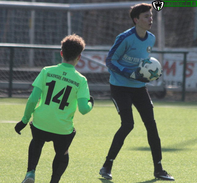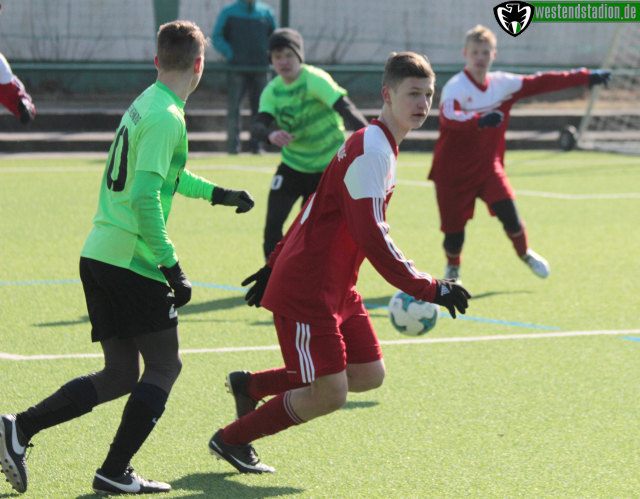 Der favorisierte Gast aus Falkensee brauchte 10 Minuten um das Spiel in den Griff zu bekommen. Eberswalde verteidigte konzentriert im Mittelfeld, zeigte aber schwächen unmittelbar vorm Tor. Ein Alleingang der mit einem Lattenschuss abgeschlossen wurde machte die Richtung klar. Die Führung für die Gäste dann nach einem Spielzug über die linke Seite. Der Pass unmittebar vor dem Tor musste nur noch abgestaubt werden. Der zweite Gegentreffer dann durch eine starke Einzelaktion. Der Torschütze konnte sich am Fünfemterraum trotz zwei Gegenspielern drehen und abziehen. Immerhin waren die Preussen effektiv, denn noch vor der Halbzeit wurde die einzige Torchance genutzt. Nach einem Spielzug über Moritz Elsholz auf der linken Seite die mit einem Preßschlag eingeläutet wurde, konnte Justin Kaszemeikat den Ball zentral zum Anschlusstreffer verwerten. In der zweiten Halbzeit das Spiel nicht mehr so einseitig und Eberswalde jetzt durchaus für einige Konterchancen gut, auch wenn meist der Abschluss fehlte. Falkensee versuchte es mehrfach mit Distanzschüssen und hatte mit einem Schuss aus Nahdistanz an den Außenpfosten eine Chance zur Entscheidung. In der Schlussphase erhöhten sie dann noch mal den Druck und machten mit einer Direktabnahme nach einem Eckball mit ihrem dritten Treffer auch die Entscheidung.