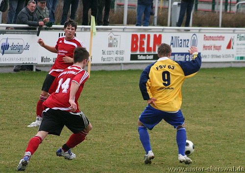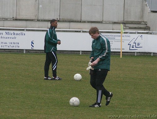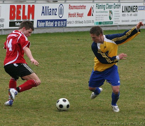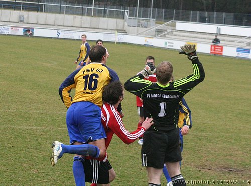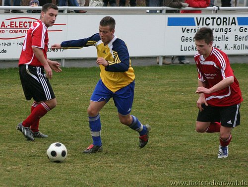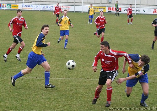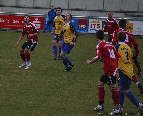 In einem hochklassigen Spiel des FV Motor beim FSV Luckenwalde kamen die Zuschauer buchstäblich von der ersten Minute an voll auf ihre Kosten. Beim seinem Verbandsligadebut musste Torwart Marcus Gebhardt schon nach dem ersten Angriff der Luckenwalder den Ball aus dem eigenen Netz holen, denn eine hohe Flanke lies die Motor Abwehr schlecht aussehen und Lindner konnte aus 10 Metern unbedrängt verwandeln. Die Antort lies nicht lange auf sich warten, denn Motor erhielt im Gegenzug einen Freistoss aus 15 Metern, den Christian Rauch als Flanke vors Tor brachte, wo ihn Martin Präger noch geringfügig abfälschte und so bestand auch der erste Ballkontakt des Luckenwalder Torwarts darin den Ball aus dem eigenen Tor zu holen. Danach übernahmen wieder die Luckenwalder die Initiative und machten Druck auf die Eberswalder Abwehr, der deutlich "Leuchtturm" Mirko Rücker fehlte, der seine 5.Gelbe heute absass. Dennoch konnte immer wieder gemeinsam verteidigt werden und auch der ein oder andere Konter gestartet werden. Dabei hatte Rafet Ates zweimal Torchancen, ansonsten wurde der Motor Torjäger aber intensiv gedeckt und kam nicht so zum Zuge. Mehr Freiheiten hatte da Johannes Persecke, der ebenfalls zweimal dem Bewacher entwischte, aber im Abschluss kein Glück hatte. Clever arbeitete Luckenwalde dann die erneute Führung heraus. Vom Tor weglaufend, hakte sich ein Luckenwalder am Strafraumeck bei Martin Präer ein und fiel, Elfmeter. Braune lies Gebhardt mit einem platzierten Schuss keine Chance. Dennoch schlug Motor zehn Minuten später eiskalt zurück. Einen abgeprallten Ball am Strafraum nutzend, nahm Steffen Sasse den Ball mit der Brust an und schlos platziert flach unten rechts zum 2:2 ab. In der zweiten Halbzeit spielte Motor weiter aus einer flexibelen Konterhaltung und lies Luckenwalde ansonsten anrennen. So zog Rafet Ates seinem Bewacher nach einem langen Pass davon und wurde vom herauseilenden Keeper klar gefoult. Der Schiedsrichter gab zwar den fälligen Strafstoss, für das Foul des klar letzten Mannes aber nur Gelb. Johannes Persecke brachte Motor vom Punkt in Führung. Luckenwalde versuchte nun Motor einzuschnüren und hatte dabei deutlich die Schwächen bei hohen Bällen erkannt, dennoch scheiterten die Stürmer zweimal aus Nahdistanz vor der Torlinie, als sie die Kugel über den Kasten schossen. Motor kam in dieser Phase kaum zu Entlastung. Erst in der 72.Minute bekam Luckenwalde einen Freistoss von der Strafraumgrenze , der am Elfmeterpunkt sehr hoch aufsprang und Torwart Marcus Gebhardt überraschte, so das die Kugel vor zwei bereitstehenden Angreifern direkt ins Tor ging. Nach dem Ausgleich blieb es ein Spiel auf Messers Schneide. Luckenwalde vergab eine weitere Großchance, als Lindner freistehend an Gebhardt scheiterte. Auf der Gegenseite hatte Motor durch einen Flankenlauf von Johannes Persecke eine Gelegenheit, bei der der Ball allerdings über die Grundlinie ins Aus rollte. Obwohl der Schiedsrichter seinen Assistenten überstimmte, wurde dieser vom Luckenwalder Torwart so angeherrscht, das dieser dafür die Ampelkarte sah. Mit einem Mann mehr gehörte Motor die Schlussphase, so konnte man noch eine Eckballstaffette herausholen, blieb aber ohne klare Schusschance. Mit der Punkteteilung sind beide Teams sicher gut bedient. Motor bleibt trotz aller Ausfälle in 2009 weiter ungeschlagen und kann die nächsten Spiele entspannt angehen.