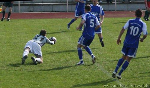Diesmal wurde wurde keine Führung verspielt und der Schiedrichter wars nicht, Motor war gegen Neuruppin einfach in allen Mannschaftsteilen einen Tick zu langsam und zu harmlos. Dabei glänzte auch Neuruppin nicht unbedingt , aber bereits die frühe Führung zeigte die Schwächen in der Verteidigung deutlich auf. Beim Klärungsversuch gibt es einen Preßschlag von Konrad Schulz an der Strafraumgrenze und der Ball fällt einem Neuruppiner Stürmer auf den Fuß, der kann dann unbehelligt bis zum Fünfmeterraum vordringen und einschiessen. Motor danach bemüht nicht ganz die Ordnung zu verlieren. Bei eigenen Aktionen rennt man sich regelmäßig fest, Pässe landen beim Gegner oder im Nichts. Neuruppin macht auch nicht mehr als nötig , hat aber dennoch zwei weitere Großchancen auf dem Fuß, wobei der Ball aus Nahdistanz verpasst wird. Das zweite Tor dann nach einer starken Einzelaktion von Stölke, der Kristian Stelse und Konrad Schulz auf der linken Seite stehen lässt. Als er im Strafraum ins Straucheln kommt zieht er mit dem Außenrist ab und er Ball landet in der kurzen Torecke. Motor kommt mit der ersten richtigen Torchance unverhofft fünf Minuten später zum Anschlusstreffer. Christian Schlegel überläuft seinen Gegenspieler auf der linken Seite und spielt steil nach rechts. Dort kann sich Sirko Neumann durchsetzen und schliesst unhaltbar flach gegen die Laufrichtung des Torwarts ab. Neuruppin zeigt daraufhin ebenfalls Wirkung und Motor kann sich bei zwei Eckbällen in der Hälfte des Gegners festsetzen. Die Hoffnung das nun eine Aufholjagd im zweiten Abschnitt los gehen könnte war schon wenige Minuten nach der Pause dahin. Bei einem Konter hängen die Neuruppiner über drei Stationen ihre Gegenspieler regelrecht ab und können nach einer Flanke von der rechten Seite das 3:1 erzielen. Neuruppin zog sich in der Folgezeit weit zurück und lies die Eberswalder kommen. Diese hatten zwar dadurch Feldvorteile, zunächst aber ohne größere Chancen. Erst Einzelaktionen liessen nochmal Hoffnung aufkommen. Christian Schlegel legte mit einem Lauf über die halblinke Seite los, kam aber am Strafraum ins Stolpern und sein Querpass fand keinen Mitspieler. Marcel Urbanowicz war fünf Minuten später sogar ganz frei durch, scheiterte aber an einer Fußparade des Keepers. Motor nun mit Druck vor allem durch einige Eckbälle und hohe Freistossflanken. Erik Brien, Mirko Rücker und Christian Stelse verpassten ebenfalls kurz vor dem Tor. Nach dieser offensiv starken Viertelstunde war die Luft aber wieder raus. Neuruppin mit ihren Angriffen zweimal erst in letzter Sekunde von der Inneverteidigung abgeblockt. Die entgültige Entscheidung dann erneut durch einen Konter. Der erste Schuss kommt als Abpraller zurück und wird dann aus zehn Metern unbedrängt eingeschossen.