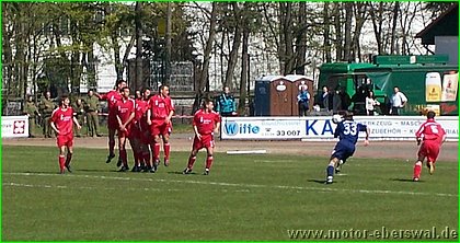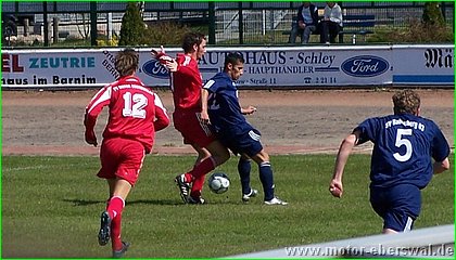 Nach der Pause hatte Motor in der 50.Minute gegen erneut drückende Babelsberger eine lupenreine Konterchance über Jan Lorenz und Thomas Döhring, der den eingewechselten Mathias Schilling anspielte, der im Strafraum völlig frei vorm Torwart den Ball aus fünf Metern über den Dreiangel schoß. Nach dieser ausgelassenen Chance war immer mehr zu erkennen, das Babelsberg im Gegensatz zu Motor die ausgeruhtere Mannschaft war und bei Motor langsam die Kräfte fehlten um dagegen zu halten. Um so mehr als nach einem Ballverlust im Mittelfeld sich der Babelsberger Schwanke durchsetzte und aus Metern mit einem verdeckten Schuss zum 2:0 traf. Bei Motor fehlte nun auch in den Entlastungsaktionen die Präzision und Babelsberg machte weiter das Spiel, wobei klare Torchancen kaum zu Stande kamen. Erst als Babelsberg in der Schlussphase die Motorabwehr aus der Bewegung heraus überraschen konnte ergaben sich gefährliche Konter. Erst vergab Lau aus spitzem Winkel noch frei vor Olaf Pospieszny, aber in der 83.Minute erzielte Benjamina den Endstand, als drei Babelsberg einen Stellungsfehler der Hintermannschaft nutzten und frei vorm Tor standen. Die restliche Spielzeit ging dann ohne jegliche Höhepunkte über die Zeit, wobei bei Motor wohl auch schon das Spiel am Mittwoch im Kopf gewesen sein dürfte.