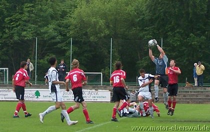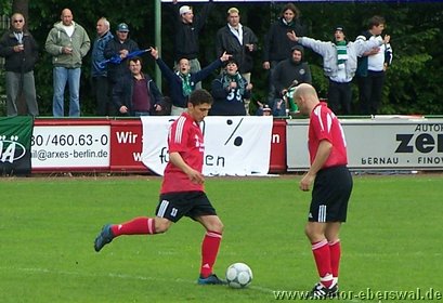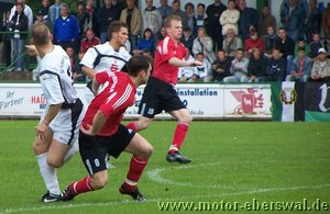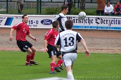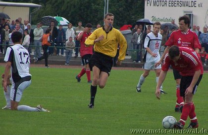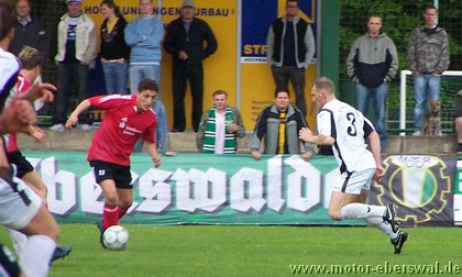Die Anfangsphase gehörte zunächst den Gästen, die in den ersten zehn Minuten zwei Stellungsfehler der erneut umgebauten Abwehr (Torsten Maerz fehlte wegen fünfter gelber Karte) nicht zu Toren nutzen konnten. Zunächst verzog ein Stürmer frei von der Strafraumgrenze, danach musste René Heinrich einen Ball von der Linie zur Ecke schlagen. Motor fing sich jedoch nach zwanzig Minuten und kam selber zu guten Aktionen. Bei Schüssen von Jan Lorenz und Rafet Ates fehlte nicht viel. Dennoch machte der Motor Torjäger kurze Zeit später die Führung, als er von Mathias Schilling in Szene gesetzt, den Ball im Strafraum über den Falkenseer Torwart heben konnte und zum 1:0 traf. Die Gäste in der Folgezeit nervös und Motor noch mit zwei Gelegenheiten die Führung bis zur Pause auszubauen. In der zweiten Hälfte versuchten zunächst die Gäste auf den Ausgelich zu drängen, kamen jedoch gegen die tiefer stehende Motor Abwehr trotz zahlreicher Eckbälle und Freistösse aus der Halbdistanz nicht zu klaren Gelegenheiten, was vor allem an der sicheren Strafraumbeherrschung von Olaf Pospieszny lag, der alle hohen Bälle sicher herunterpflückte. Motor selbst setzte zur Enlastung auf Konter, die zunächst nur wenig Gefahr brachten. Zunächst hatte Mathias Schillin nach einer Flanke von Rafet Ates die Chance zum Torschuss, der aber völlig abrutschte, dann nach einer schönen Kombination von Sirko Neumann auf Rafet Ates stand dieser vor dem Falkenseer Tor völlig frei. Allerdings scheiterte er mit seinem halbhohen Schuss am glänzend reagierenden Falkenseer Torwart. Praktisch im Gegenzug hatte Falkensee die größte Chance zum Ausgleich, aber eine Eingabe von halblinks ging nicht nur an der Motor Abwehr vorbei sondern auch knapp an zwei Falkenseer Stürmern und dann ins Aus. Falkensee öffnete seine Defensive in der Schlussphase völlig und Motor kam nur noch selten an deren Kasten heran, als in der letzten Minute Motor nach einem Eckball nochmal in Tornähe kam, köpfte Jan Lorenz nach eine Flanke von Steffen Sasse zur Entscheidung ins rechte untere Toreck ein.