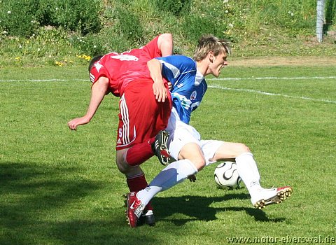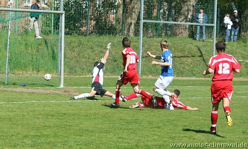 Auch wenn man gegen die gut stehende Hintermannschaft der norddeutschen nichts zu Wege brachte, hielt man die Rostocker doch vom Tor weg, so das diese nur durch Standardsituationen gefährlich wurden. Hier hatte Motor mehrere mal Glück, als Kopfbälle knapp übers Tor gingen. Motors einzige nennenswerte Aktion war ein Kopfball von Felix Kalohn, der aber gut zwei Meter vorbei ging. Entschieden wurde das Spiel dann nach einer halben Stunde. Zuerst verlor Mirko Rücker einen zurückgespielten Ball am eigenen Strafraum gegen gleich zwei Rostocker, die keine Mühe hatten den Ball einzuschieben. Nur zwei Minuten später trafen sie per Kopf nach einer Ecke zum zweiten mal. Motor kam nun bis zur Pause kaum noch aus der eigenen Hälfte und wehrte nur noch die ballsicher agierende Rostocker ab. Diese fanden jedoch kurz vor der Pause noch einmal eine Lücke und waren mit einem Schuss von der Strafraumgrenze zum dritten mal erfolgreich. Zu Beginn des zweiten Durchgangs begannen die Rostocker wie sie aufgehört hatten und schnürten Motor weiter in der Hälfte ein, welche weiter nur durch Befreiungsschläge oder lange Bälle aus der eigenen Hälfte kamen. Ein 'langer Ball' hatte es aber in sich. Denn Torsten Maerz schlug einen Freistoss aus der eigenen Hälfte einfach mal quer über den Platz aufs Rostocker Tor und erwischte den, weit vor dem Kasten stehende Keeper eiskalt, denn der Ball schlug genau im Winkel ein. Rostock II nun eher wütend zog wieder an und nutzte einen Ballverlust des eingewechselten Marcel Hellmich um mit zwei Mann aufs Tor zu ziehen und das 4:1 zu machen. Den fünften Treffer erzielten sie wieder mit einem platzierten Flachschuss von der Strafraumgrenze. Motor hielt kämpferisch zwar die ganze Zeit dagegen und machte die Räume eng, da jedoch alle offensiven Aktionen ins leere liefen, gab es kaum Entlastung. Dem sechsten Treffer ging eine völlig verunglückte Faustabwehr von Adrian Peters vor raus, die wie beim Volleyball vom Kopf eines Rostockers zurück in sein Tor eingenickt wurde. Auch in der Schlussphase hatte Rostock noch ein halbes Dutzend gute Einschussgelegenheiten, jedoch blieb Motor, auch wegen einer gewissen Lässigkeit die diese nun im Abschluss zeigten eine höhere Niederlage erspart.