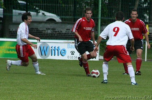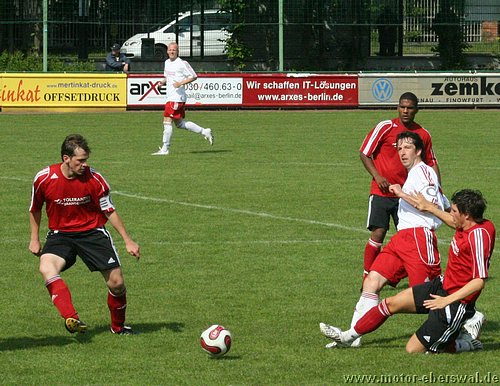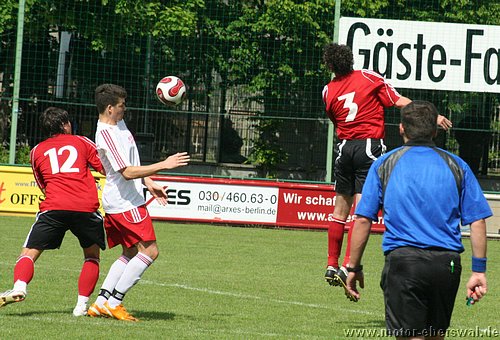 Gegen Kuckuck zeigte sich Motor deutlich verbessert und wurde durch ein Tor von Johannes Persecke in der zweiten Halbzeit auch belohnt. Von Beginn an lies Motor Kuckuck durch konsequente Zweikampfführung nicht ins Spiel kommen und schaltete schnell auf Angriff um. So ergaben sich erste Chancen durch Johannes Persecke, der ans Außennetz schoss und José Hornemann der den Keeper prüfte. Beste Chance dann durch eine Standardsituation, der Ball von Johannes Persecke ging knapp am linken Pfosten vorbei. Kuckuck dann auch mit einer Standardsituation zum ersten Mal gefahrlich. Ein Freistoss von der Strafraumgrenze zwang Swen Lichtenberg zu einer Glanzparade. Kuckuck dann zu Ende der ersten Hälfte besser im Spiel, konnte sich aber gegen die Abwehr in der Christian Schlegel Libero spielte nicht entscheidend durchsetzen. In der zweiten Hälfte das Spiel ausgeglichen, die Kuckucks versuchten mit kuzen Dribblings Löcher in die Abwehr zu reissen, spielten aber oft zu kompliziert. Motor etwas geradliniger aber häufig fehlter der entscheidende Pass. Vor allem Ümit Ergin wirbelte viel vor dem Strafraum fand jedoch selten den gut postierten Anspielpartner, so das es nun öfter mit langen Bällen probiert wurde. Kuckuck hatte seine beste Chance durch einen Konter, jedoch verzog der Stürmer von der Strafraumgrenze neben das Tor. Motor antwortete im Gegenzug und diesen schloss Johannes Persecke mit einem Flachschuss aus 20 Metern in die linke untere Ecke zur Führung ab. Die Chance sofort nachzulegen war da, denn zwei Minuten später hatte Ümit Ergin freie Bahn über halblinks, der Torwart lenkte den aufsetzenden Ball jedoch übers Tor. Kuckuck brachte durch zwei Auswechlungen für die letzten 10 Minunten nochmal viel Druck ins Spiel und berannte das Eberswalder Gehäuse, jedoch behielten sie ihre verspielte Art der Ballführung bei und standen sich mehrmals die Stürmer selber im Weg. Motors Abwehr konnte immer wieder stören, leitete aber nur wenige Konter ein. Auch weil die Stürmer gut mit nach hinten arbeiteten. Auch wenn es durch Ballverluste noch mehrmals brenzlig wurde, konnte das Ergebnis gesichert werden. Die Mannschaft zeigte nach den beiden schwachen Spielen zuvor eine disziplinierte Leistung und konnte so vor allem in der Abwehr die Ausfälle kompensieren.