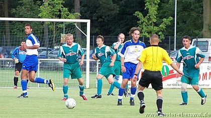 Schon nach fünf Minuten konnte Motor den ersten Treffer beim Landesligisten FSV Forst Borgsdorf erzielen, als Michél Jahn nach einer langen Flanke von Rico Musick per Kopf zur Stelle war. Danach Motor zwar deutlich spielbestimmend, aber ohne die ganz großen Gelegenheiten. Davon hatten die bis dahin völlig passiven Gastgeber plötzlich gleich mehrere hintereinander. So stand bei einem Konter plötzlich ein Borgsdorfer völlig frei vorm Tor, scheiterte aber am glänzend parienden Olaf Pospieszny. Dieser wäre beim ersten und zweiten Nachschuss chencenlos gewesen, konnte sich jedoch auf Felix Kalohn verlassen der den Ball gleich doppelt von der Linie klärte. Nur wenige Minuten später war erneut ein Borgsdorfer Spieler frei durch, fand jedoch erneut seinen Meister im Motor Keeper, der den Ball sicher fest hielt. Obwohl Borgsdorf danach nur noch selten über die Mittellinie kam, stellte sich Motor in der Offensive etwas umständlich an. So scheiterte Rafet Ates bei mehreren guten Gelegenheiten aus nächster Tornähe. Erst Torsten Maerz konnte mit einem genau platzierten Schuss aus 30 Metern in den Winkel auf 2:0 erhöhen. Motor nun mit einer Reihe von Ecken oft nah am dritten Treffer, so musste nach Felix Kalohns Kopfball ein Borgsdorfer auf der Linie klären, musste darauf jedoch bis kurz vor der Pause warten, als Frank Ploen per Freistoß erfolgreich war.