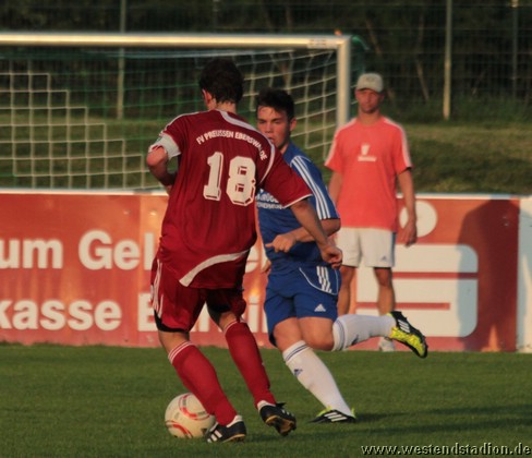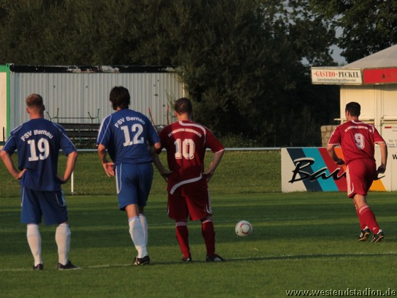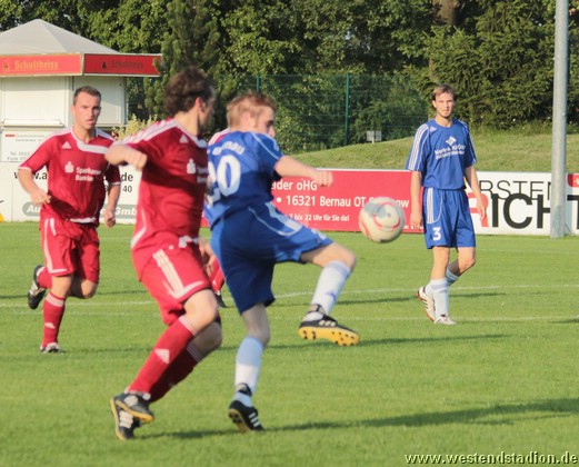 Rico Eichstädt springt ein vom Bernauer Torwart abgeprallter Ball vor die Füsse, er kann ihn aber nicht verwerten. Bernau bei zwei Kontern mit freier Schussbahn, aber der Ball wird jeweils verstolpert. Erst die letzten Minuten vor der Pause baut Eberswalde Druck auf, aber Marcus Bülow und Christian Schlegel lassen Großchancen aus. In der zweiten Halbzeit bei langsam nachlassender Wärme, mehr Bewegung im Spiel. Gleich mit dem ersten Angriff ist Marcel Hellmich frei durch schiesst aber knapp daneben. Die Führung liegt aber nun in der Luft und Christian Schlegel kann fünf Minuten später frei die Führung erzielen. Zehn Minuten später die Gelegenheit nachzulegen. Nach Dribbling wird Rico Eichstädt frei vor dem Tor gelegt. Den Strafstoss schiesst Christian Schlegel gegen den rechten Pfosten. Danach Preussen klar am Drücker, doch Rico Eichstädt, Marcus Bülow und Felix Kalohn lassen Gelegenheiten zum zweiten Treffer aus. Erst nach einem Konter durch Paul Kallies erneut ein Strafstoss, diesmal nicht eindeutig aber keine Proteste von den Bernauern. Diesmal macht es Christian Schlegel ganz sicher linsk halbhoch unhaltbar. Bernau danach auch mit zwei glasklaren Chancen, aber Swen Lichtenberg pariert jeweils stark gegen frei durchgehende Stürmer. Der dritte Treffer kurz vor Schluss, diesmal beim Konter gleich drei Preussen frei durch Christian Schlegel macht im Solo den Ball rein. Kurz danach ist Schluss. Nach der Überlegenheit in der zweiten Halbzeit ist das Ergebnis in Ordnung, Sonnabend vormittag geht es in Schwedt weiter.