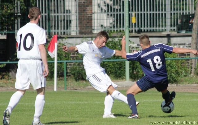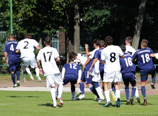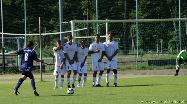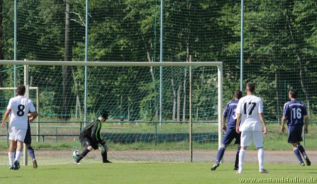 So schoben sich die Preussen die erste Viertelstunde fast durchgehend den Ball an der Mittellinie zu, ohne das daraus irgendeine Angriffsaktion zu machen wäre. Lichterfelde versuchte lange Bälle nach vorne zu schlagen, aber ihre Stürmer erreichten diese nicht so das sie zumeist im Seitenaus landeten. Lichterfelde bekam nach gut einer halben Stunde dann einen Freistoss an der Strafraumgrenze, der mit einem Heber über die Mauer genau in der Tormitte landete. Unverhofft konnte die Reserve sofort zurückschlagen, ein Ball aus dem Mittelfeld wird im Strafraum von Marcus Bülow erlaufen und volley auf Gordon Fichtner abgelegt, der direkt abzieht. Olaf Pospiesny ist noch dran, kann aber nicht parieren. Mit zunehmender Spielzeit war dann mehr Bewegung im Spiel, auch wenn beide Teams nicht besonders genau zielten. Zu Beginn der zweiten Hälfte bauten die Eberswalder dann ab, Lichterfelde überraschte gleich mehrfach die Viererkette, machte dann aber aus den Möglichkeiten nichts, so auch auch, als Mathias Krause bereits im Strafraum ausgespielt war und der Ball noch mal quergelegt wurde. Aber es wurde aus wenigen Metern volley knapp neben das Tor geschossen. Preussen II nur noch durch Standardsituationen vor dem Tor, aber auch ein Freistoss von Christian Rauch und ein Schuss von Paul Kallies aus der zweiten Reiher sind nicht zwingend genug. Der zweite Treffer für Lichterfelde dann nach gut einer Stunde. Zunächst stoppt Mathias Krause einen Konter mit einer Fußparade, der Ball prallt aber ins Mittelfeld zurück und wird wieder von einem Lichterfelder Spieler angenommen. Dieser läuft danach unbedrängt Richtung Tor und kann mit einem Flachschuss ins lange Ecke die Führung für die Gäste erzielen. In der restlichen Viertelstunde fällt der Zweiten dann wenig ein um noch mal zum Ausgleich zu kommen. Obwohl man zahlreiche Ecken herausholt ist man insgesamt zu harmlos, vor allem als der Gegner in der Schlussphase tief stand und ohne größere Schwierigkeiten das Ergebnis über die Zeit brachte.