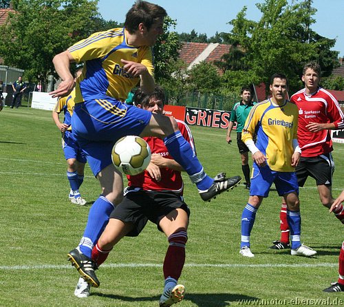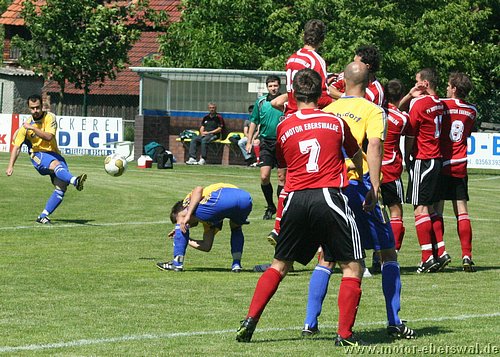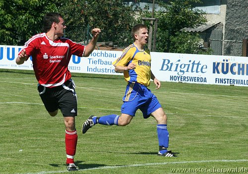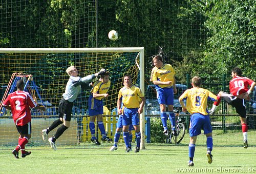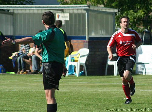 Motor spielt in Laubsdorf 2:2, ist vom Spielverlauf her mit dem Punkt gut bedient auch wenn man bis kurz vor Schluss in Führung lag. Denn in der ersten Halbzeit war Laubsdorf teilweise drückend überlegen und lies Motor zu keiner wirklichen Torchance kommen. Auch wenn die Heimmannschaft einen böhigen Wind im Rücken hatte, waren sie doch vor allem in den Zweikämpfen bissiger und standen in der Abwehr sehr gut organisiert. Motor hatte mit Kristian Stelse und Mirko Rücker zwei Stammverteidiger an die Zweite Mannschaft abgegeben und die neu formierte Abwehr um Christian Schlegel rettete mehrfach in höchster Not. Konter waren selten und scheiterten entweder an ungenauen Anspielen oder endeten bei einem Verteidiger. Das Gegentor dann allerdings ein reines Geschenk. Denn Swen Lichtenberg wollte einen Ball über die Grundlinie ins Aus rollen lassen und rechnete nicht damit das ein Stürmer noch vor der Linie mit einem langen Bein den Ball erwischte und ihn genau vors leere Tor brachte wo nur noch eingeschossen zu werden brauchte. Glück dann in den nächsten Minuten, zunächst versuchte Bencken einen Elfmeter zu schinden, sprang aber zu theatralisch ab (auch der Kampfschrei machte es nicht realistischer), dann lies Motor einen Stürmer am Fünfmetrraum entlangdribbeln, bis dieser die Kugel ans Lattenkreuz hämmerte. Mit der Pause wechselte auch der Windvorteil und Motor konnte nun zumindest auf lange Bälle setzen. Wobei gleich der ersten Konter der durchkam kreuzgefählich war, aber José Hornemann, der zwei Gegenspieler stehen lies übersah Johannes Persecke auf der rechten Seite und schloss aus ungünstigen Winkel ab, so das der Keeper keine Mühe hatte. Die Szene schien dennoch die Defensive der Laubsdorfer verunsichert zu haben, denn ihr gutes Stellungsspiel aus der ersten Halbzeit zeigte Wackler, die Ümit Ergin und José Hornemann immer wieder vors Tor kommen lies. Einen Angriff der von Ümit Ergin eingeleitet wurde, schloss José Hornemann durch einen noch abgefälschten Schuss zum Ausgleich ab. Laubsdorf warf sofort alles nach vorne und Motor konterte weiter mit Rückenwind. So wurde Erik Klein am linken Strafraumeck festgehalten und es gab Freistoss, den Ümit Ergin zur Führung genau in den langen Torwinkel zimmerte. Kurz darauf die Gelegenheit zur Vorentscheidung, aber José Hornemann entschied sich erneut für den Abschluss aus spitzem Winkel statt auf Johannes Persecke zu spielen. Die letzte Viertelstunde gehörte dann ausschliesslich den Laubsdorfern. Sie schnürten Motor wieder völlig hinten ein und hatten an der Strafraumgrenze immer wieder genug Freiheit um Swen Lichtenberg zu mehreren starken Paraden zu zwingen. So deutete sich der Ausgleich an, der dann kurz vor Schluss den Laubsdorfern nach einer Einzelaktion über die halblinke Seite auch noch gelang. Der aufs Tor zurollende Ball sprang Konrad Schulz beim Klärungsversuch über den Fuß ins Tor.