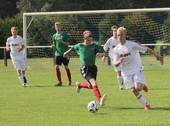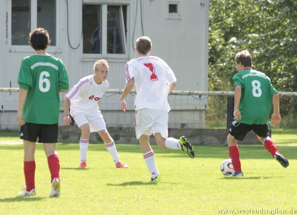 Die schnellen Konter der Hausherren machten zu Beginn zu schaffen auch wenn Domenick Adam und Marius Aplas jeweils im letzten Moment noch stören konnten und Marcus Landsrath auf dem Posten war. Selber hatte man durch Lennart Keller und Paul Schuster Chancen zur Führung, der Ball wollte aber nicht rein. Auch eine Druckphase mit mehreren Eckbällen brachte keinen Treffer. Im Gegenzug holten die Storkower einen Eckball raus und nach einem Gerangel am bei Ausführung gab es Strafstoss. Diesen nutzten die Storkower zur Fürhung. Hannes Drews und Nick Lange hatte noch vor der Pause den Ausgleich auf dem Fuß, der fiel aber nicht. In der zweiten Halbzeit meldete man die Konterstürmer besser ab und baute zunehmend Druck auf, war aber trotzdem im Glück, als ein Spieler auf und davon war aber dann an Marcus Landsrath scheiterte. Als man selbst mal nach einer Balleroberung kontern konnte war Hannes Drews frei durch, quer gelegt auf Nick Lange schiesst dieser den Ausgleich. Eberswalde bleibt weiter am Drücker und ein verdeckter Schuss von Eirik Fink aus zwanzig Metern dreht sich flach zur Führung in die lange Torecke. Storkow macht nun wieder mehr für die Offensive, aber damit auch die Räume wieder auf. Hannes Drews kann mit einem Volleyschuss die Entscheidung erzielen, der Ball rutscht ab genau auf den Fuß eines Verteidigers und von da rollt er über die Torlinie. In den letzten Minuten kann Preussen das Ergebnis noch ganz klar machen. Aber ein Schuss von Nick Lange geht knapp über das Dreiangel und bei einem Konter wird ein Schuss von Hannes Drews vermeintlich mit der Hand eines Verteidigers geklärt, Schiedrichter sieht es anders. Auch so ein letztlich verdienter Sieg, der aber bei ansteigenden Temperaturen schwer erarbeitet wurde, aber den zahlreichen mitgereisten Eberswalder Zuschauern auf dem Sportplatz Alt-Stahnsdorf richtig Spass machte.