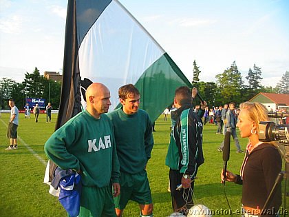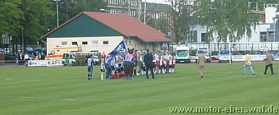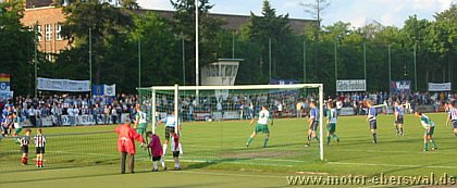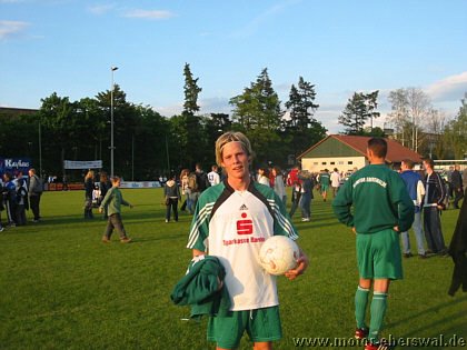 Gegen die, bestenfalls mit einer Verlegenheitself angetretene Bundesligamannschaft von Hertha BSC wurde das Westendstadion mal wieder ordentlich gefüllt. Die Rollen waren klar verteilt, und durch einen schnellen Angriff in der zweiten Minute brachte Pinto Hertha mit 1:0 in Führung. Danach war beim Bundesligisten zunehmende Lustlosigkeit auszumachen, die Motor sogar einige Spielanteile einbrachte. Beste Gelegenhait hatte Kristian Stelse, der etwas früher hätte schießen müssen. Das 2:0 erzielte Neuendorf per Fernschuss in einer Phase als Motor wirklich im Spiel war. Dieses blieb trotzdem recht verteilt und hatte weitetestgehend den Charakter von offensivem Sommerfußball. Zur zweiten Hälfte wechselte Motor mehrfach aus und hatte gleich die erste Gelegenheit, aber Rafet Ates verpasste knapp. Motor bekam zeitweise das Spiel in den Griff während Hertha fast alle Bemühungen einstellte. Bei einem schnellen Vorstoß in den Strafraum wurde Kristian Stelse von Karwan festgehalten und es gab Elfmeter, den Christian Rauch sicher verwandelte. Hertha wechselte nun noch Standby Profi Preetz und Co-Trainer Thom ein und die beiden brachten wieder deutlich mehr spielfreude herein. Durch eine schöne Kombination im Strafraum, bei der allerdings auch alle Gegenwehr der Motor Defensive fehlte erzeilte Stevens das 3:1 für Hertha. Motor machte nun wieder mehr nach vorne und vor allem der schnelle Christian Hintz stand zweimal nah vor einem Torerfolg. In der Schlußphase, wurde Motor jeweils nach Standardsituationen durch Kopfbälle von Preetz und Salomon überrascht, so das der etwas zu hohe Endstand zu stande kam.