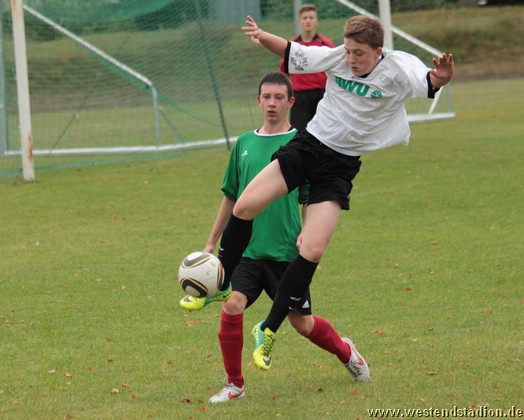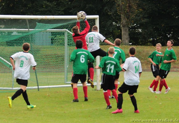 Aber Marcus Landrath konnte beides mal stark parieren. Die Führung dann kurz vor der Pause, nach einer Flanke von Marius Aplas verlängert Nick Lange per Kopf und Eirik Fink spring höher als der Torwart und sein Kopfball senkt sich als Bogenlampe ins Tor. In der zweiten Halbzeit gewinnt Velten mehr Spielanteile und bei den Eberswalder häufen sich die Fehlpässe. Ganz alt sieht man beim Gegentor aus, als zweimal Preussen Spieler angeschossen werden, den Ball aber nicht klären können bis ein Veltener völlig frei vorm Tor steht und verwandelt. Danach das gleiche Bild, Velten immer wieder mit klaren kontern, allerdings verziehen sie gleich zwei davon im Abschluss aus freistehender Position. Auf der anderen Seite hat Eberswalde zwei Pfostenschüsse zu verzeichnen. Die erneute Führung gelingt in der 72.Minute, als eine Vorlage von Paul Schuster bei Tilo der den Ball aus 5 Metern in den Dreiangel setzt. In den letzten Minuten kann man dann alledings diese Führung nicht verteidigen, ein Zweikampfverlust an der rechten Außenbahn fürht zu einem Pass in den Strafraum, der Spieler kann sich mit dem Ball drehen und Marcus Landsrath streckt sich vergeblich nach dem verdeckten Schuss. In der Schlussphase setzen dann beide Teams noch Ditsanzschüsse an, die aber übers Tor gehen. Dem Spielverlauf nach geht das Ergebnis in Ordnung, weil sich Velten clever anstellte und Eberswalde aus seinen spielerischen Vorteilen im Abschluss zu wenig gemacht hat.