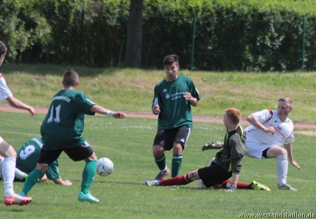 Der Gegner hielt nur die erste Viertelstunde richtig mit, stand aber recht tief und hatte zwei Konterchancen wovon Marcus Lanzrath einmal richtig eingreifen musste. Preussen schoss sich ab der 16. Minute richtig ein und nutzte nun besser die Abwehrlücken, so das bereits vor der Pause das Spiel mit vier Treffern praktisch entschieden war. Auch weil der Kapitän der Heimmannschaft wegen einer völlig unnötigen Bemerkung zum Schiedsrichter die Rote Karte gesehen hatte. Gleich zu Beginn der zweiten Hälfte brach Gransee dann völlig ein und kassierte die Tore im Zwei-Minuten-Takt. Preussen war pausenlos im Angriff und lies trotz des zweistelligen Ergebnisses auch noch einige klare Gelegenheiten gegen den überforderten Gegner aus. Der Schiedsrichter hatte bereits in 87.Minute ein Einsehen und pfiff die Partie drei Minuten zu früh ab. Nun wurde nach dem Ergebnis des Spiels von Petershagen gegen Hennigsdorf Ausschau gehalten, was erste eine Dreiviertelstunde nach dieser Partie los ging. Da dort jedoch Petershagen mit 2-1 gewinnen konnte, bleibt Preussen zweiter in der Tabelle und spielt auch nächstes Jahr mit der A-Jugend in der Landesklasse.