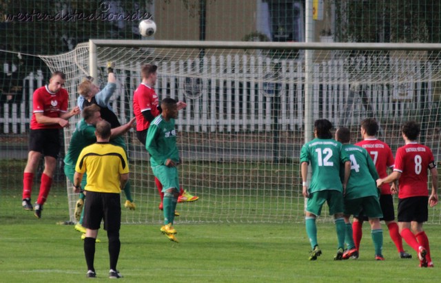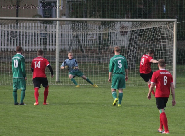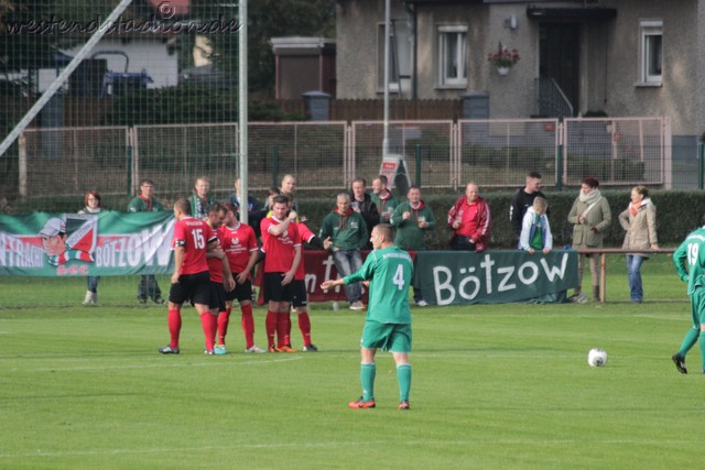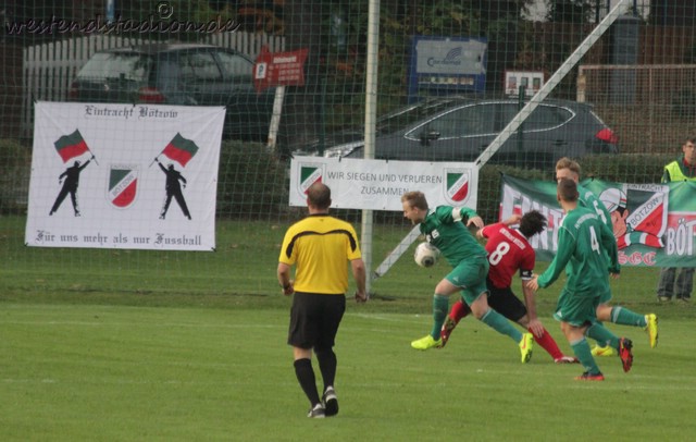 Erst mal war der Gesamteindruck in Bötzow positiv, denn nach der Langeweile der unteren Ligen, war hier endlich mal ein ordentlicher Heimmob angetreten, auch wenn von dem anfangs nur zu sehen aber wenig zu hören war und ein gut platzierter Übungsplatz konnte zur Not sogar als Gästekäfig durchgehen. Also auf gings: Die Heimmannschaft machte zunächst das Spiel und Preussen II ging mit dem Handicap eines in der Aufwärmphase verletzten Keeper Marcus Lanzrath ins Spiel. Nachdem dieser nach einer Freistossflanke hinter sich greifen musste rückte Steven Zimmermann in Gehäuse nach , also der Junge macht bei Preussen derzeit wirklich ALLES! Schien das Elend zunächst seinen Lauf zu nehmen, hatte Preussen plötzlich mehr Glück als irgendwas. Denn einem simplen langen Ball auf Kenny Ladewig kommt kein Bötzer hinterher und der Keeper nicht raus und so zimmert er diesem das Ding einfach unter die Latte. Aber zum Jubeln reichts dann nicht mehr, denn mit dem Schuss zerrt er sich den Oberschenkel und muss raus. Aber Preussen hat die Bötzower jetzt erwischt und kann gleich scharf nachwaschen. Ein Freistoss wird abgefälscht und so geht man in Führung, die Chris Zimmermann gleich noch ausbauen kann. Alles fast zu einfach, auch wenn man personell immer weiter zerlegt wird, denn auch Philipp Heinrich kann nicht weitermachen. Als nach Wiederanpfiff schnell der Anschlusstreffer fällt, ist klar das das Ding noch nicht durch ist. Allerdings hat man in der Folgezeit drei klare Chance den vierten Treffer und damit den Sack zuzumachen. Besonders als sich der Bötzower Kapitän innerhalb von 3 Minuten konsequent vom Platz meckert und man in Überzahl angreifen kann. Aber der Vorteil verstreicht und spätestens als durch Gelb/Rot gegen Marco Jakoplic wieder pari herrscht startet Bötzow die finale Aufholjadg und kann fünf Minuten vor dem Ende per Kopf ausgleichen. In der Nachspielzeit erhalten sie dann noch einen fragwürdigen Elfmeter und gewinnen durch diesen mit 4-3. Bilanz drei Verletzte, einen Gesperrten, Null Punkte. Immerhin gutes Wetter für die mit dem Zweirad Angereisten (also ich und der Schiri) und sowas wie Fußballatmosphäre ... entschädigt nicht ganz aber is eben so.
