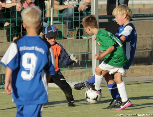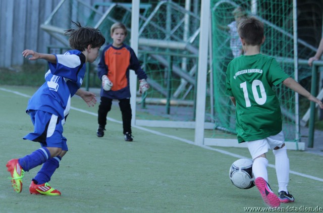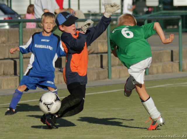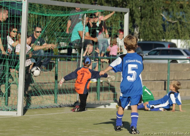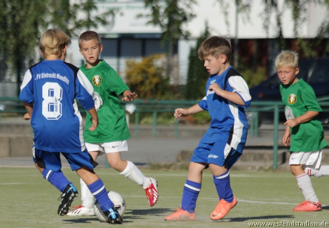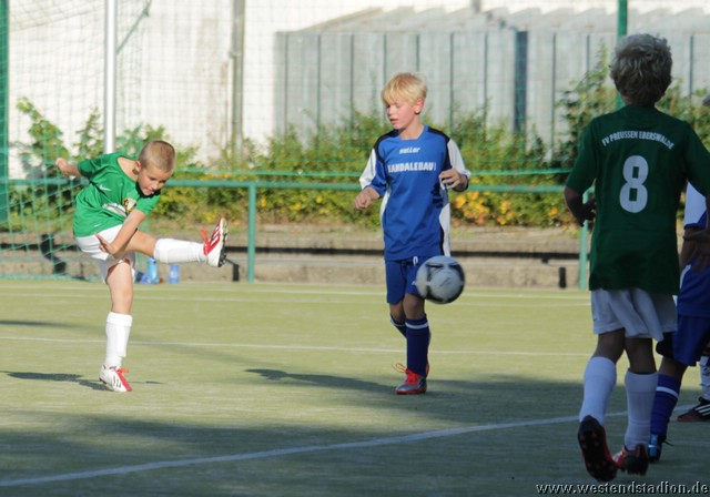 Die Eberswalder nahmen gleich Fahrt auf und drückten Wandlitz hinten rein. Allerdings brachte man den Ball auch aus besten Positionen nicht im Tor unter. Es dauerte eine Weile bis Ron den Ball aus nächster Tornähe doch versenken konnte. Wandlitz setzte nur darauf einige Befreiungsschläge zu kontern zu nutzen. Diese wurden aber in der ersten Halbzeit zumeist abgelaufen. Etwas Beruhigung brachte in der 12.Minute der zweite Treffer. Nach einem Heber aus dem Mittelfeld standen gleich zwei Preussen frei vor dem Tor und Leon machte das 2-0. Mit dem Dauerdruck ging es auch in der zweiten Hälfte weiter, allerdings hatte man weiter Pech, scheiterte am Keeper oder spielte den letzten Pass nicht genau. Nach zahlreichen ausgelassenen Chancen, reichte Wandlitz dann ein Konter um mit etwas Glück tatsächlich den Anschlusstreffer zu machen. Allerdings gerieten die Eberswalder nicht wirklich in Gefahr, denn drei Minuten später konnte Phillipp einen abgefälschten Ball aus nächster Nähe über die Linie bringen. Nach Pfosten- und Lattentreffern gelang kurz vor Schluss der vierte Treffer. Wandlitz war sicher nicht so stark wie Ahrensfelde, allerdings haben auch sie gezeigt das man seine Chancen machen muss, sonst kann es auch mal anders kommen.