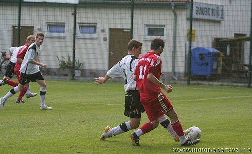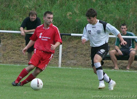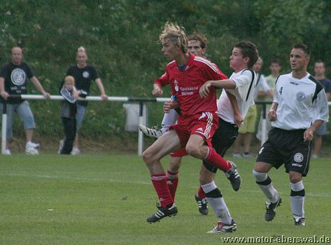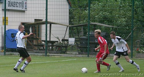 Motor behielt gegen den Berliner Bezirksligisten Grünauer BC im vorletzten Testspiel mit 3:2 die Oberhand. Dabei spielte Motor in der ersten halben Stunde drückend überlegen und spielte sich drei sehr gute Chancen heraus, die Johannes Persecke jedoch nicht im Tor unterbringen konnte. Erst in der 22.Minute stieg er nach einem Freistoss am höchsten und lenkte den Ball mit dem Kopf ins Tor. Die Hausherren hatten sich weit zurückgezogen und spielten auf Konter von denen ihnen der erste nach einer halben Stunde gelang. Swen Lichtenberg verhinderte mit einer Fußabwehr den Ausgleich. Danach kam ein Bruch ins Spiel der Eberswalder, die das Spiel bis dahin bestimmt hatten. Das nutzten die Gäste zu weiteren schnellen Angriffen wodurch ihnen auch der Ausgleich gelang. Motor verlor nun öfter den Ball im Mittelfeld und fing sich kurz vor der Pause durch einen weiteren Konter sogar noch den Rückstand. Gleich zu Beginn der zweiten Hälfte fiel ein Tor für Motor, das wegen Abseits nicht anerkannt wurde. Motor lies sich davon nicht beeindrucken und berannte nun das Tor der Berliner geradezu. Allerdings wurden zahlreiche große Chancen ausgelassen. So köpften Johannes Persecke und Martin Präger freisthend übers Tor. André Germer brachte den Ball zweimal zwar am Torwart aber auch am Gehäuse vorbei. Es dauerte bis zur Schlussphase, als Joahnnes Persecke auf Vorarbeit von Patrick Turowski der längst fällige Ausgleich gelang. Gleich mit dem nächsten Angriff gelang Martin Präger dann die Führung für Motor. Die Eberswalder behielten den Druck aufrecht und hatten noch Chancen das Ergebnis höher zu schrauben. Grünau, die in den letzten zwei Minuten nochmal vor dem Eberswalder Tor auftachten, scheiterten jeweils an Swen Lichtenberg. Am Ende ein schnelles Spiel mit vielen Torchancen und einen verdienten Sieg für Motor, der aber hart erarbeitet werden musste.