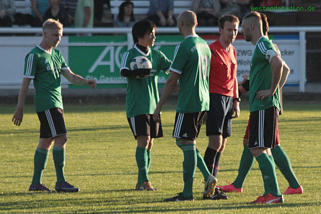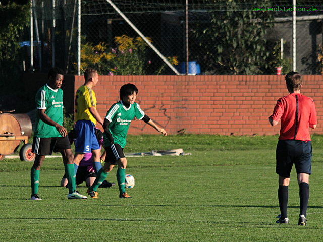 Schon nach 10 Minuten lag man zurück, ein Freistoss von der halblinken Strafraumgrenze flog über die Mauer rein , Piotr Rusek machtlos. Danach Zehdinck mit weiteren guten Chancen , Preussen als klassenhöheres Team kam nur langsam in Fahrt und blieb vor allem im Angriff ohne große Chancen. Erst zwei unwiderstehliche Einzelaktionen von Eric Mba der gleich zweimal durch die Abwehr dribbelte drehten noch vor der Pause das Ergebnis. Gleich nach Pause dann die Chance für klare Verhälnisse zu sorgen , aber dann war wieder Zehdenick dran, denen man mehrere Konter erlaubte, von denen einer dann auch zum Ausgleich genutzt wurde. Diesmal blieb Preussen ruhig und wieder Eric Mba hängte seinen Gegenspieler ab und schaffte die erneute Führung. Doch im direkten Gegenzug nagelt Zehdenick einen Ball an die Querlatte. Das Ding war noch nicht durch. Zumal sich Marcel Hellmich wegen Meckern die Gelb-Rote Karte abholte und Preussen in Unterzahl agieren musste. Doch auch das hielt nicht lange, diesmal konterte Preussen, natürlich über Eric Mba und dieser wurde kurz vor dem Strafraum gefoult. Notbremse also weiter 10 gegen 10. Kurios dann der vorentscheidende vierte Treffer, der Zehdenicker Torwart fordert nach einem Zusammenprall von Eric Mba lautstark eine Karte und kommt aus dem Tor gelaufen, gerade in dem Moment spielt ein Verteidiger einen Rückpass der nun ins eigene Tor rollt. Zehdenick weiter mit einer Schlussoffensive aber auch völlig offen gegen Konter. Tobias Koepnick zieht in der letzten Minute einen an, legt auf Eric Mba , der „verzichtet“ freistehend auf seinen vierten Treffer und legt quer auf Shinji Oba , der nur noch einzuschieben braucht.