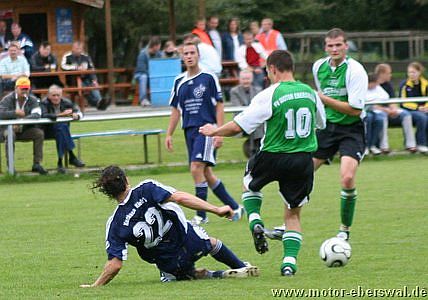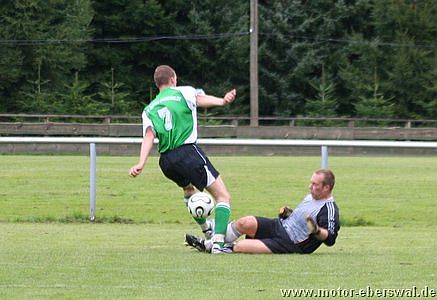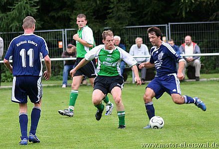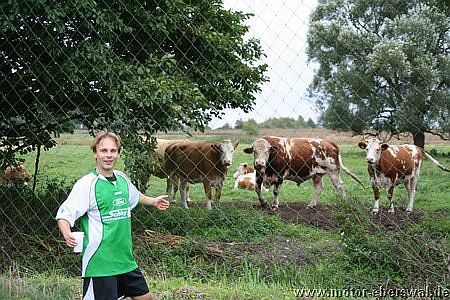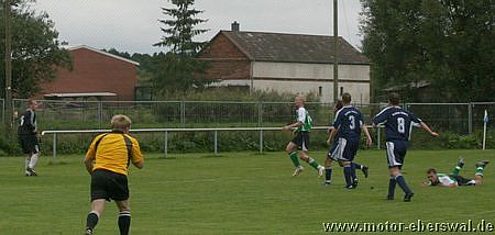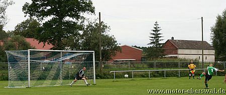 Die Hausherren, die ebenfalls auf einige Stammkräfte verzichten mussten bestimmten zunächst das Geschehen, kamen jedoch mit der gut stehenden Deckung von Motor II nicht zurecht und so war entweder am Strafraum Schluss oder die Pässe gingen ins Aus ohne eine Anspielstation zu finden. Motor II kam nach 20 Minuten zur eigentlich ersten Torchance im Spiel, als Lars Scheunert über links aufs Tor zulief, aber aus spitzem Winkel am Keeper scheiterte. Mit dem weiteren Verlauf des Spiels konnten sich die Eberswalder auch immer mehr Spielanteile erkämpfen, ohne ihre defensive Ausrichtung aufzugeben. Die Prignitzer versuchten es nun verstärkt mit Flanken, die aber im Zentrum von Mathias Schilling abgeräumt wurden und keine Torgefahr dastellten. Nach der Pause überstand Motor zunächst eine Druckphase durch die Gastgeber, die mit zwei Kopfbällen und einer Direktabnahme knapp übers Tor zu ersten klaren Gelegenheiten kamen. Nach dem verletzungsbedingten Ausscheiden von Marcel Kelch spielte man aus einer noch klareren Konterhaltung heraus und kam durch Lars Scheunert mehrmals gefährlich nach vorne, auch wenn der Abschluss fehlte. Bei einem solchen Vorstoss wurde Lars Scheunert dann unfair von einem Gegenspieler gebremst und so entschied der Schiedsrichter auf Elfmeter, den Mathias Schilling sicher verwandelte. Die Kuckuck Kickers warfen nun alles nach vorne und kamen so zu einigen Torchancen, wobei sie allerdings einige Schüsse deutlich zu hoch ansetzten. Die Gelegenheit für Motor II sogar zu erhöhen, hatte Steven Thürling, der mit einem Fallrückzieher versuchte an eine Flanke von Lars Scheunert zu kommen, den Ball aber nicht richtig traf. Zehn Minuten vor dem Ende sah ein Spieler der Heimmannschaft nach wiederholtem Foulspiel die Ampelkarte, aber die Überzahl brachte Motor II keine Sicherheit. So wirkten einige Spieler angeschlagen und die Bälle wurden zunehmend planlos herausgeschlagen. Im letzten Anlauf gelang Kuckuck durch einen Kopfball noch der Ausgleich. Vor dem Spiel hätte sicher kaum jemand mit einem Punktgewinn gerechnet, aber der in letzter Minuter verlorene Sieg lies auch keine richtige Jubelstimmung aufkommen. Dennoch haben sich alle Spieler gemessen an den zwei Auftaktspielen deutlich gesteigert, so das man in die wichtigen nächsten Spiele mit viel Selbstvertrauen gehen kann.
