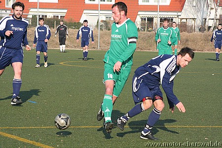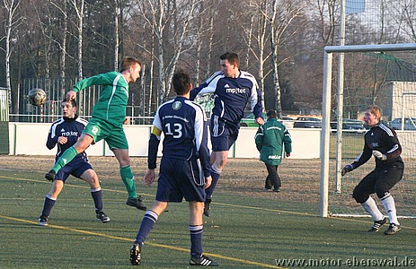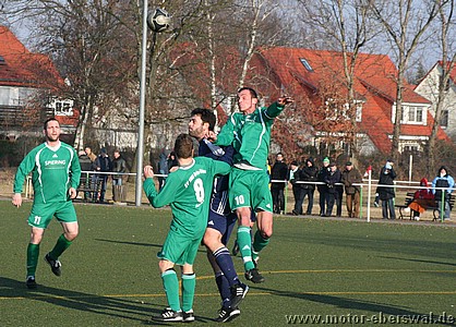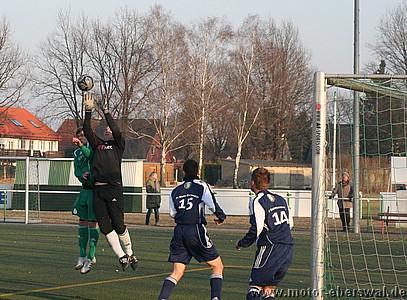 Motor II kassiert in Ahrensfelde eine erneute Niederlage, die angesichts der Ausgangslage zu erwarten war. Gleich von Beginn an bestimmten die Gastgeber das Spiel, in dem die Eberswalder nur wenige eigene Angriffe hatten und versuchten Motor II mit langsamem Spielaufbau auszuspielen. Obwohl es Motor II immer wieder gelang die Aktionen der Ahrensfelder zu unterbrechen und dieses nur zwei wirklich gefährliche Schusschancen herausspielten, brachte man sich durch einen vertändelten Querpass selbst ins Hintertreffen. Dieser wurde zur Maßvorlage für einen Stürmer der über links alleine zur Führung abschliessen konnte. Ahrensfelde brauchte auch in der Folge nur auf solche Ballverluste zu warten, beim nächsten ergab sich eine Chancen wobei der Ball gegen die Querlatte geschossen wurde. Der zweite Treffer fiel gegen die etwas aufgerückte Abwehr durch die Mitte, Marcus Gebhardt konnte den Alleingang zunächst abwehren, war gegen den Nachschuss aber machtlos. In der zweiten Hälfte hielt das Tempo nur die ersten zehn Minuten an, dann schien das Spiel eine halbe Stunde lang bei diesem Ergebnis einzuschlafen. Einige Verletzungsunterbrechungen auf beiden Seiten und der eisige Wind nahmen beiden Teams scheinbar den Schwung. Wobei Motor II mit einigen angeschlagenen Spielern ohne Auswechselmöglichkeit nur noch verteidigte. Erst nachdem Ahrensfelde in der 75.Minute ein Tor nach umstrittener Abseitsentscheidung nicht gegeben wurde, drehten diese nochmals auf und erwischten Motor II bald mit einem Doppelschlag. Beim dritten Gegentor standen gleich zwei Spieler frei vor dem leeren Tor, die Gegenwehr der Eberswalder war gebrochen. Gleich aus der nächsten Situation dann im zweiten Nachschuss resultierte das 4:0. Ahrensfelde die Motor II nun doch noch richtig vorführen wollten, rückte nun weit auf und spielte voll offensiv, was Motor II allerdings auch Kontermöglichkeiten eröffnete wie sie das ganze Spiel zuvor nicht da gewesen waren. Nachdem zunächst Tobias Raschke einen Freistoss an den Pfosten geschossen hatten, bekam Dustin Hahn mit einem Konter bei dem er frei durch war noch die Chance auf den Ehrentreffer , scheiterte aber am Torwart. Ahrensfelde die einige Kopfballgelegenheiten ausliessen scheiterten ebenso zweimal mit Alleingängen aus spitzem Winkel an Marcus Gebhardt.